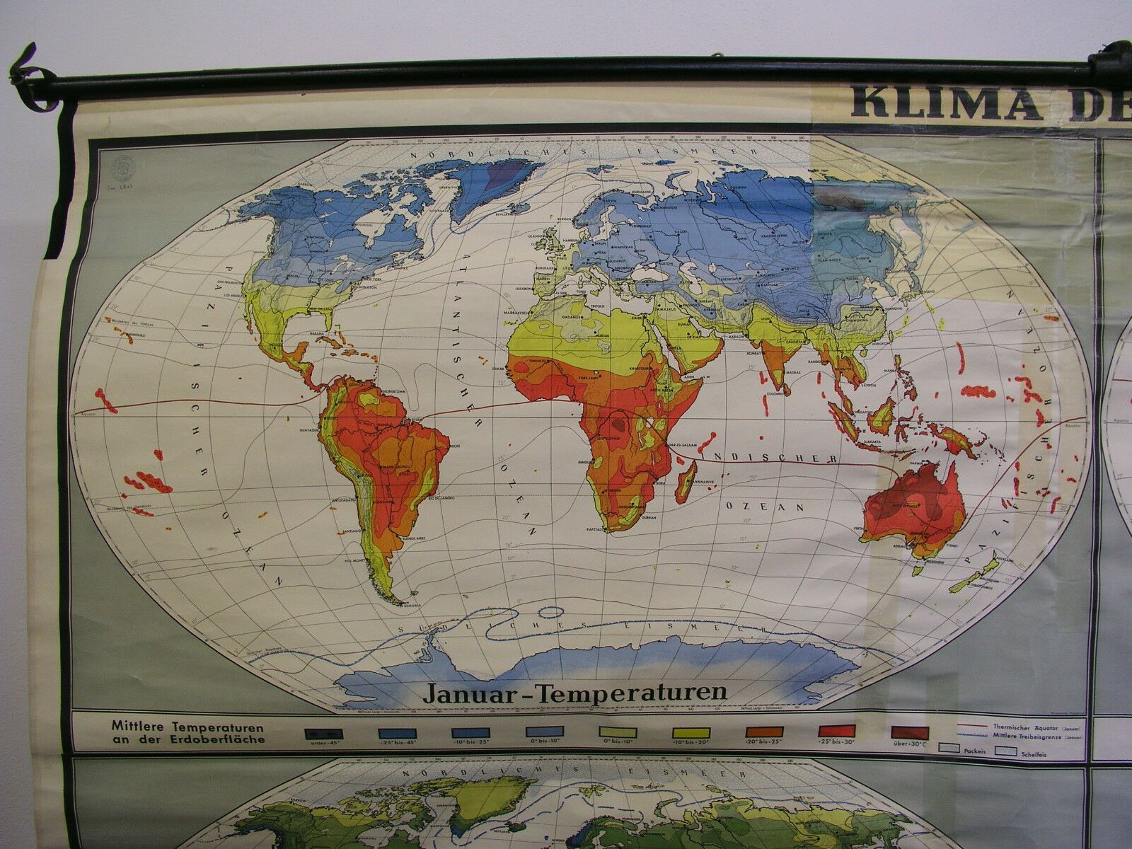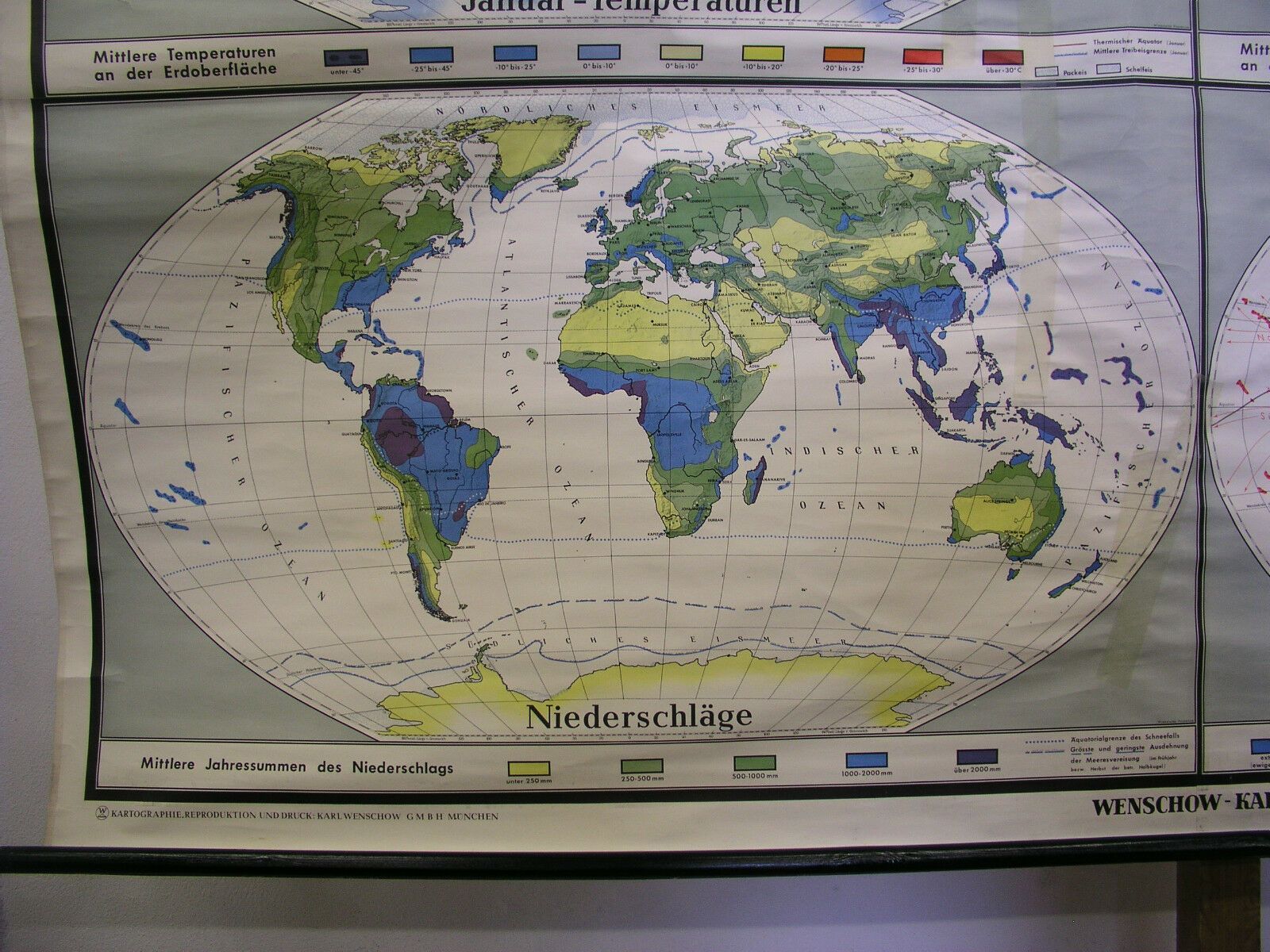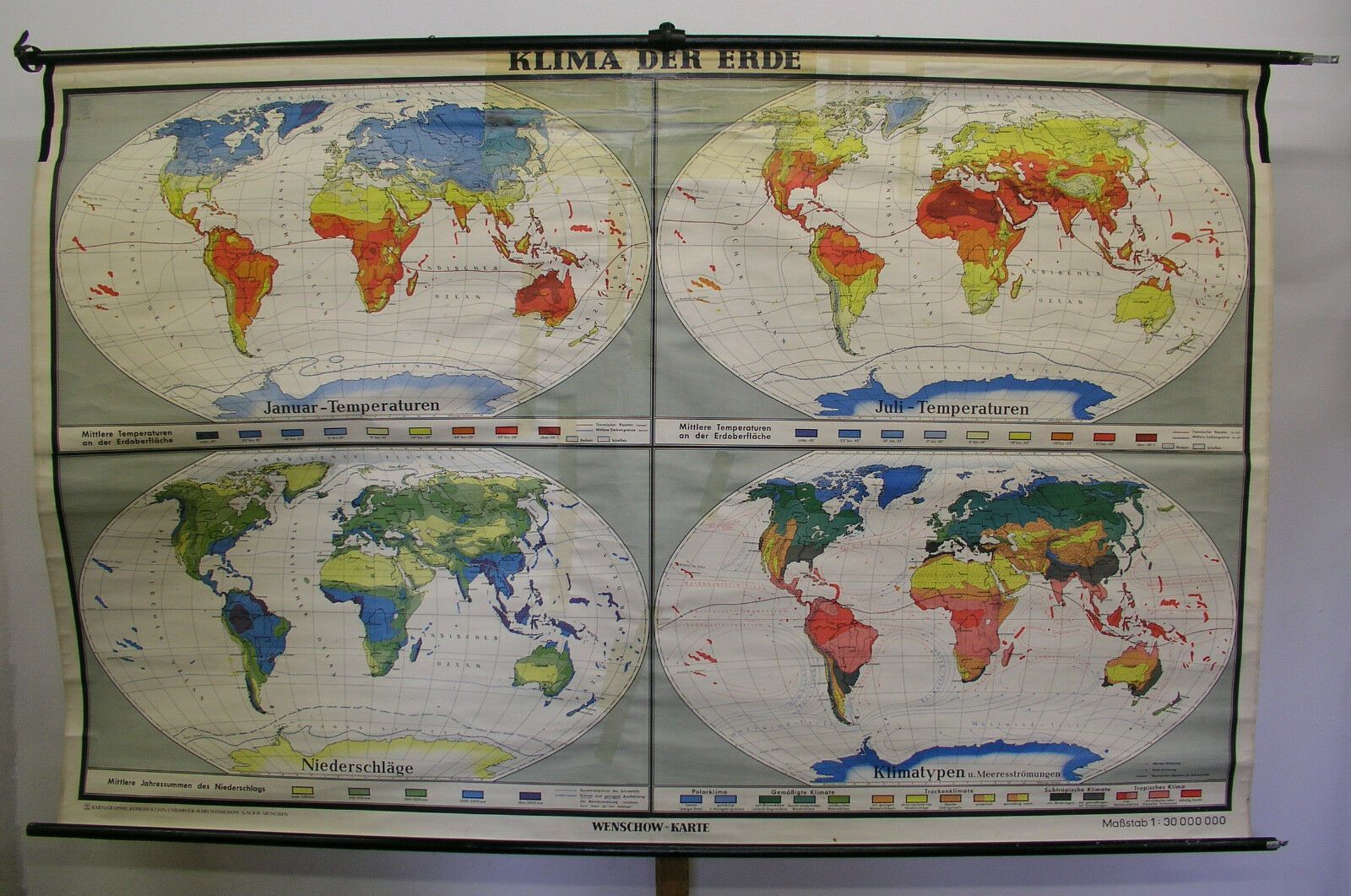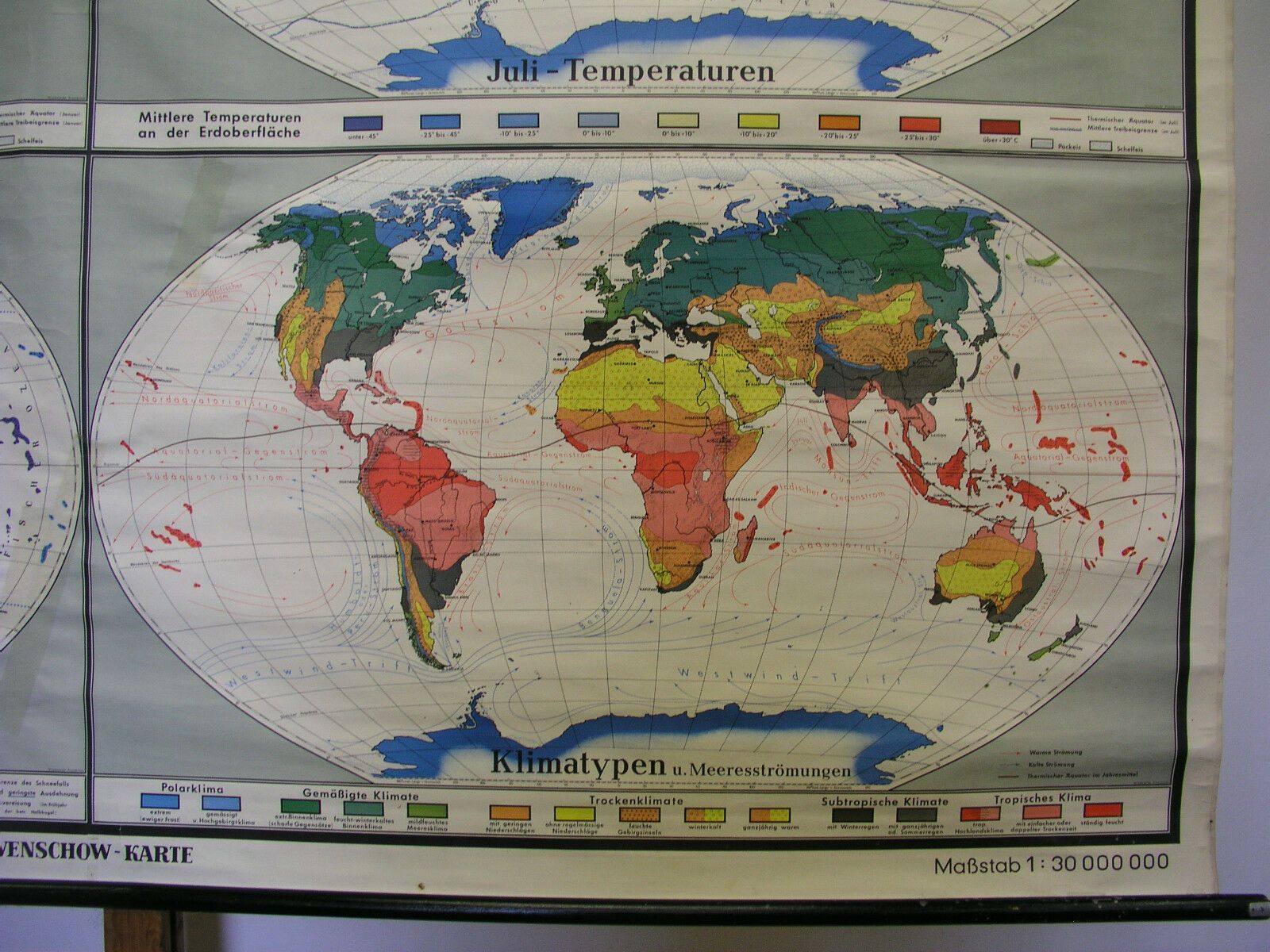 Schul-Wandkarte schöne alte Weltkarte Klimakarte Climate 249x159cm vintage 1957