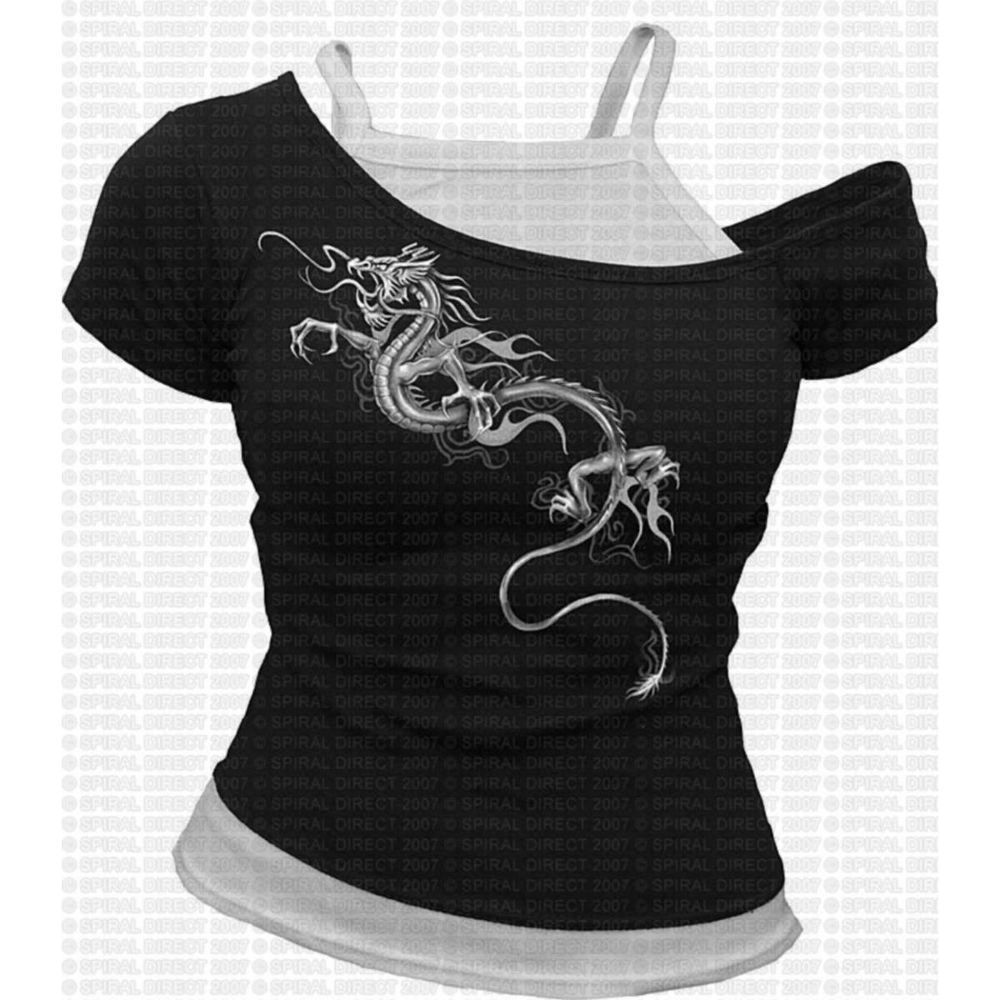 Schulterfrei 2in1 weiß-schwarz - Dragon Slant (grey) (Gr. M)