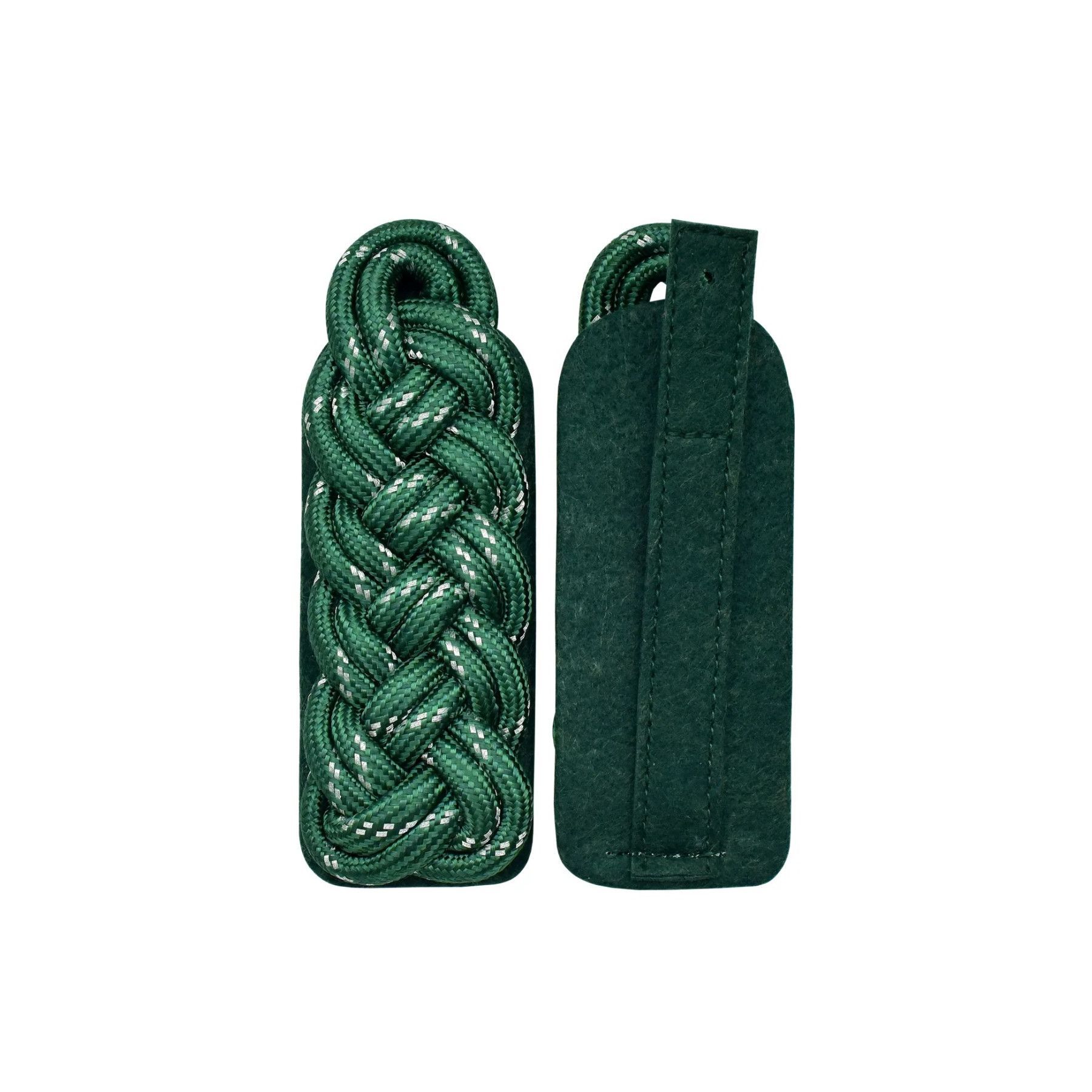 Schultergeflechte • aus ca. 6mm Rundschnur • grün mit silber National • auf grünem Filz • mit Lasche • Preis pro Paar