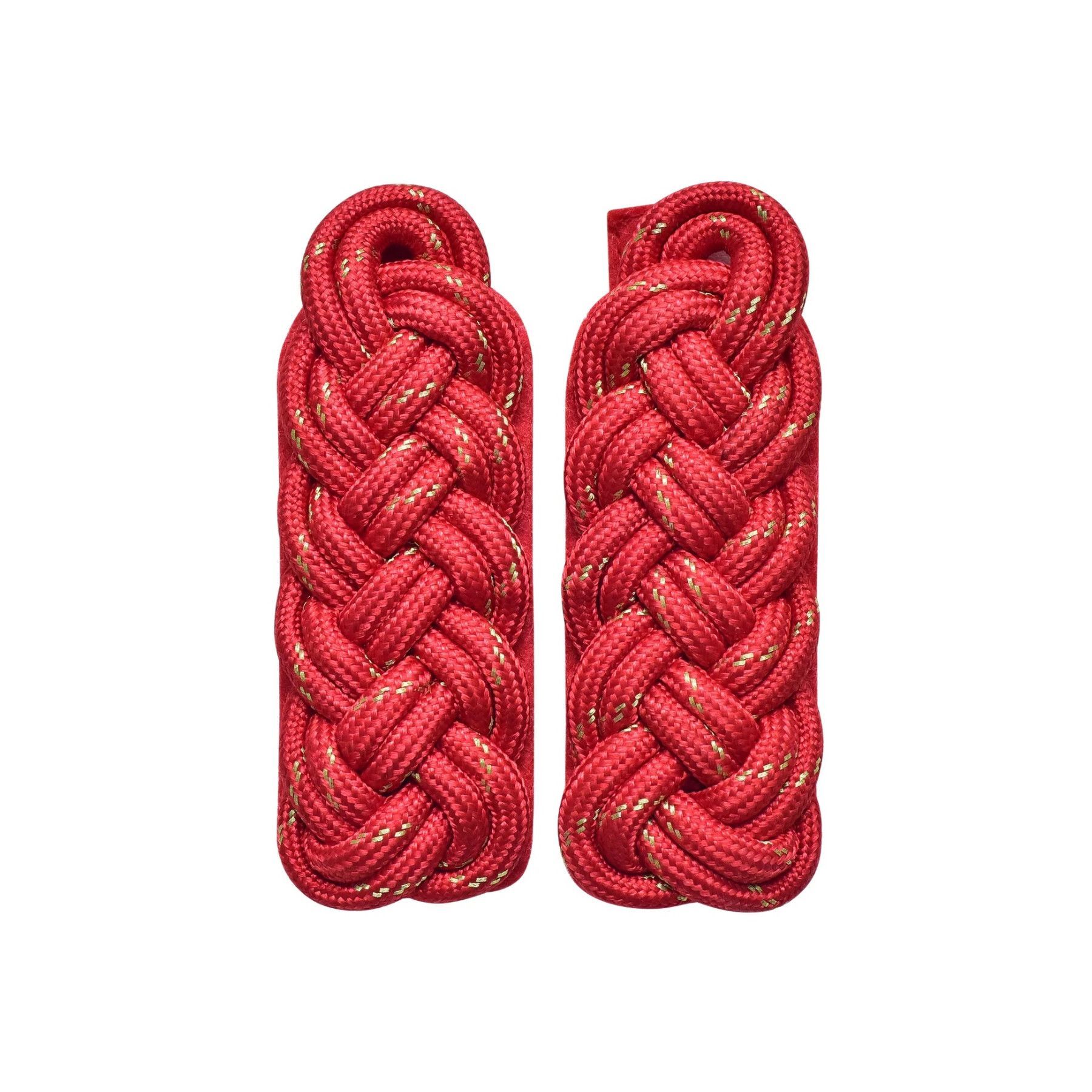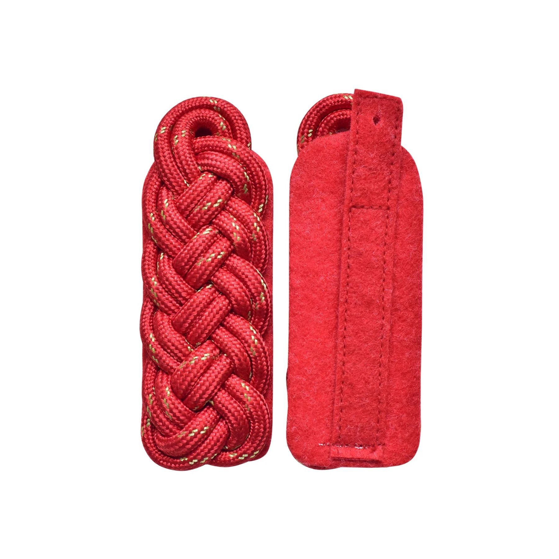 Schultergeflechte • aus ca. 6mm Rundschnur • rot mit gold National • auf rotem Filz • mit Lasche • Preis pro Paar
