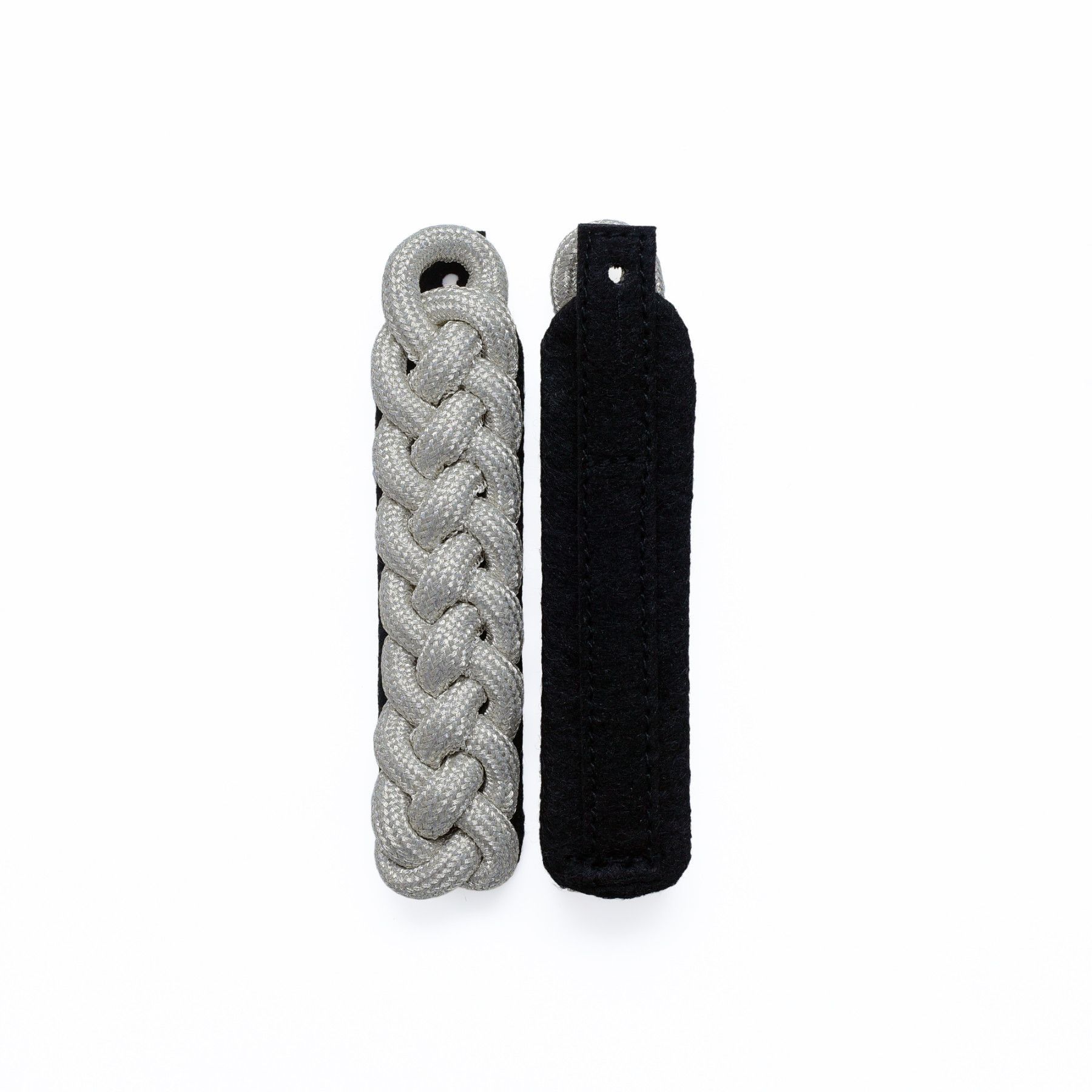 Schultergeflechte – Majorgeflecht - SILBER • Majorsgeflechte 8-bogig • aus 6mm starker Rundschnur • silberfarbiges inox Metallgespinst • auf schützengrünem, rotem, blauem oder schwarzem Filz erhältlich • mit Lasche zur Befestigung • ca. 11 x 2,5cm • Preis pro Paar