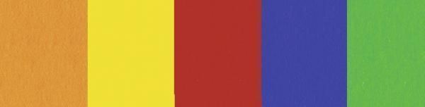 Dunkelblau, Goldgelb, Grasgrün, Rubin-Rot und Sonnengelb
