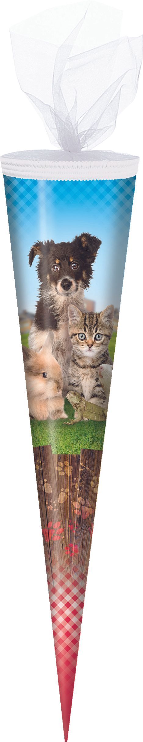 Schultüte / Zuckertüte / 70cm / rund / "Haustiere"