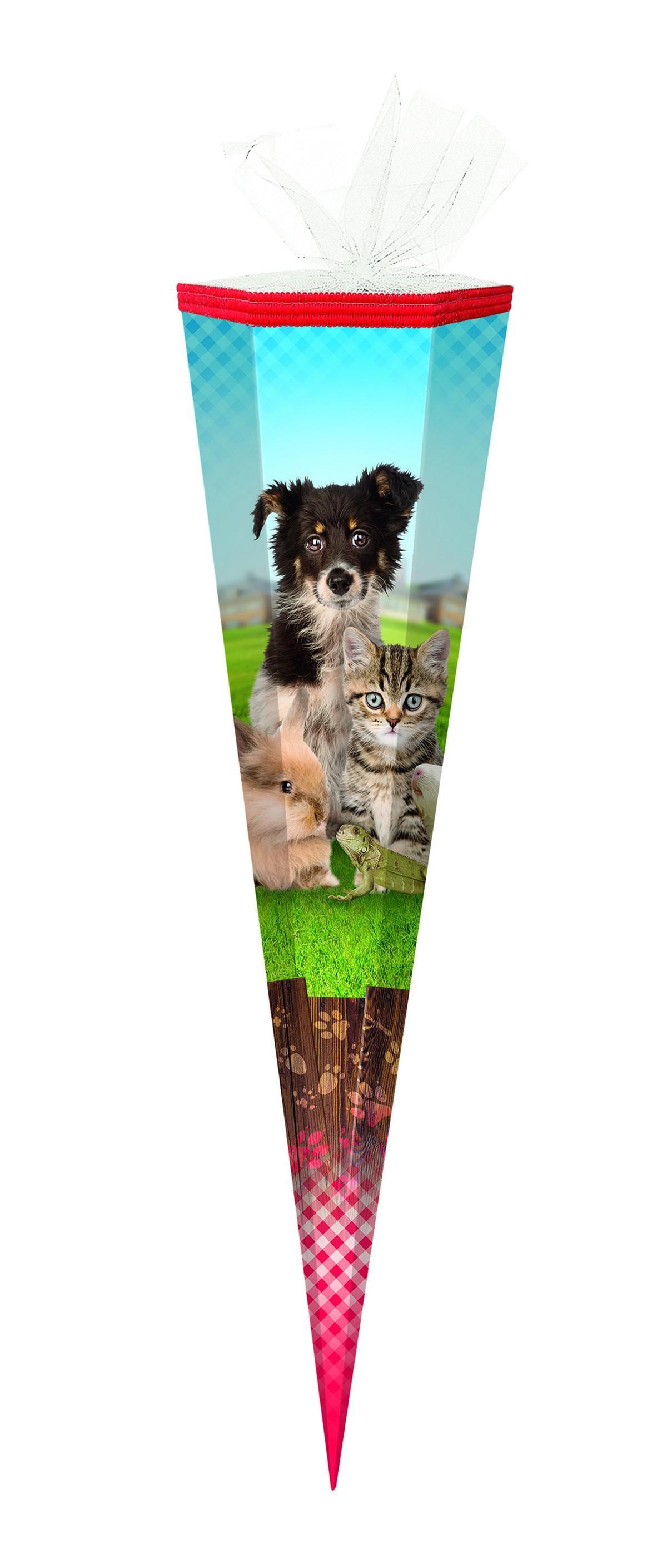 Schultüte / Zuckertüte / 85cm / eckig / "Haustiere"