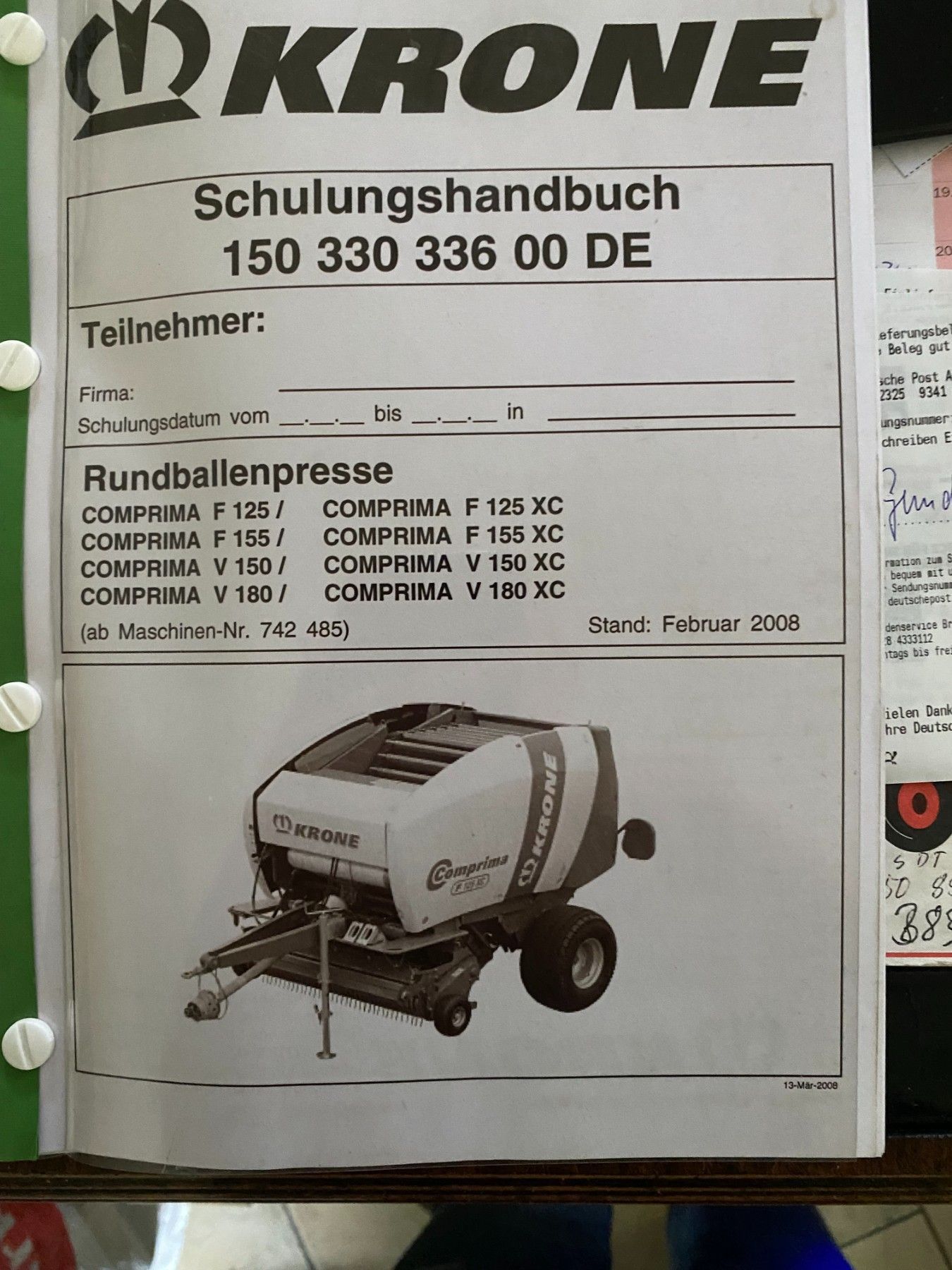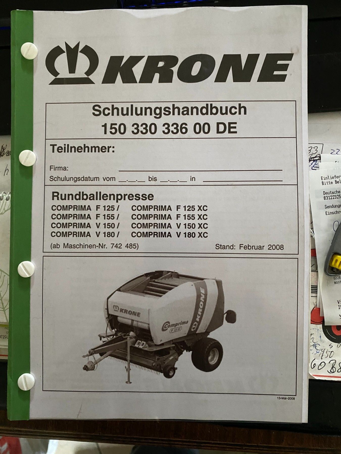 Schulungshandbuch Krone Rundballenpresse Comprima F 125 F155 V150 V 180 F 125 XC F 155XC V180 XC Deutsch siehe Fotos In PDF Kostenloses Download http: ec.europa.eu consumers odr