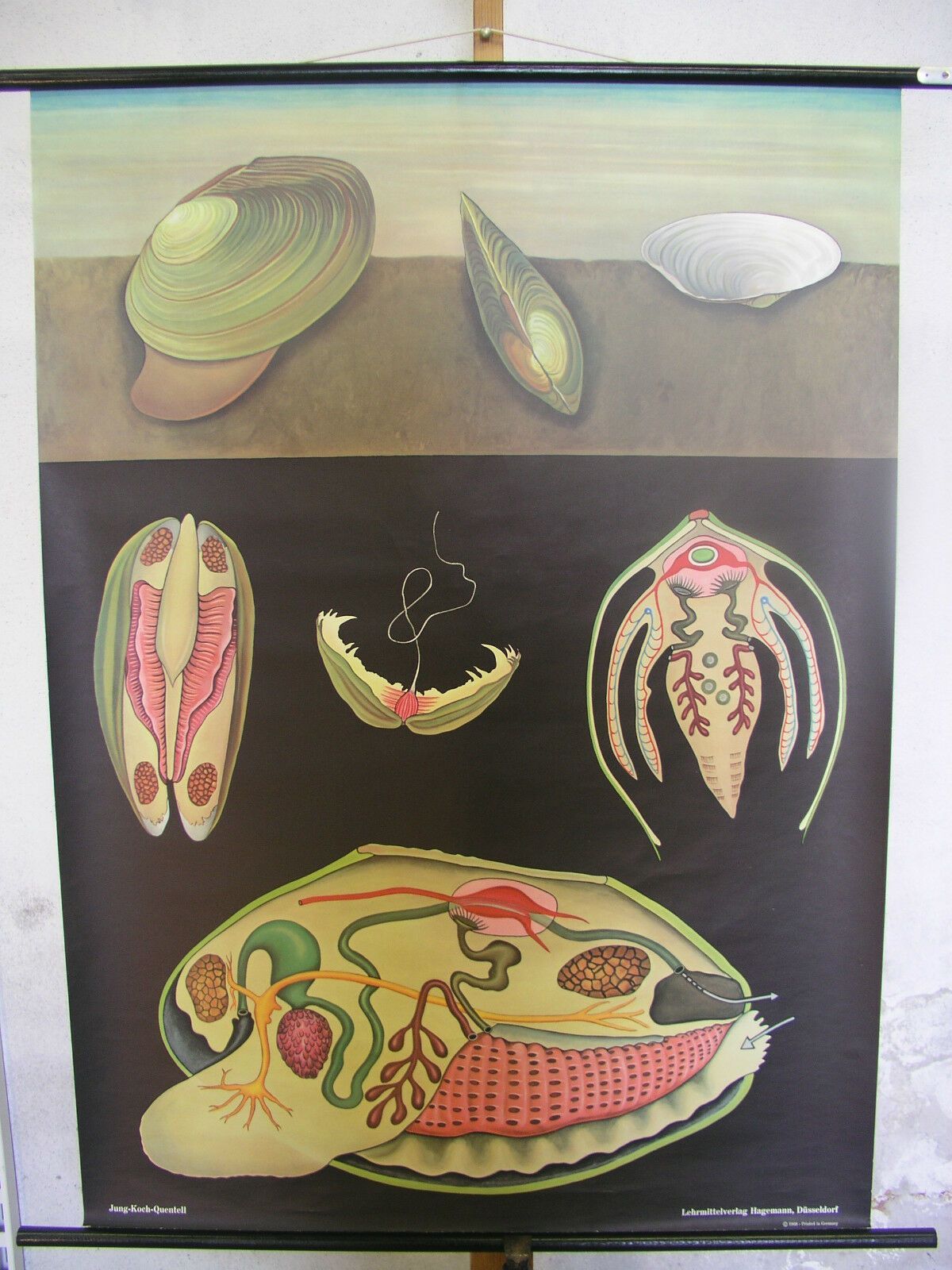 Schulwandbild JKQ Teichmuschel Muscheln Feinschmecker 82x113 1970 vintage mussel