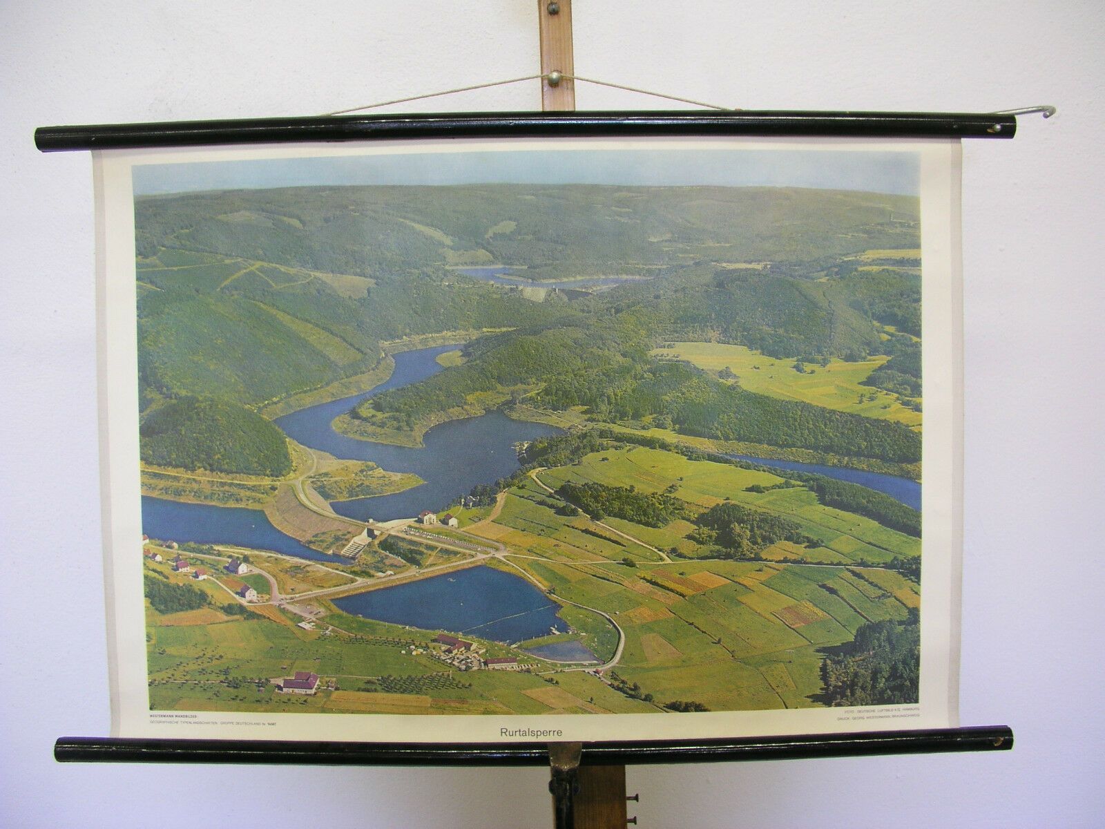 Schulwandbild schöne alte Rurtalsperre von 1938 Aachen Düren 75x51 vintage 1959