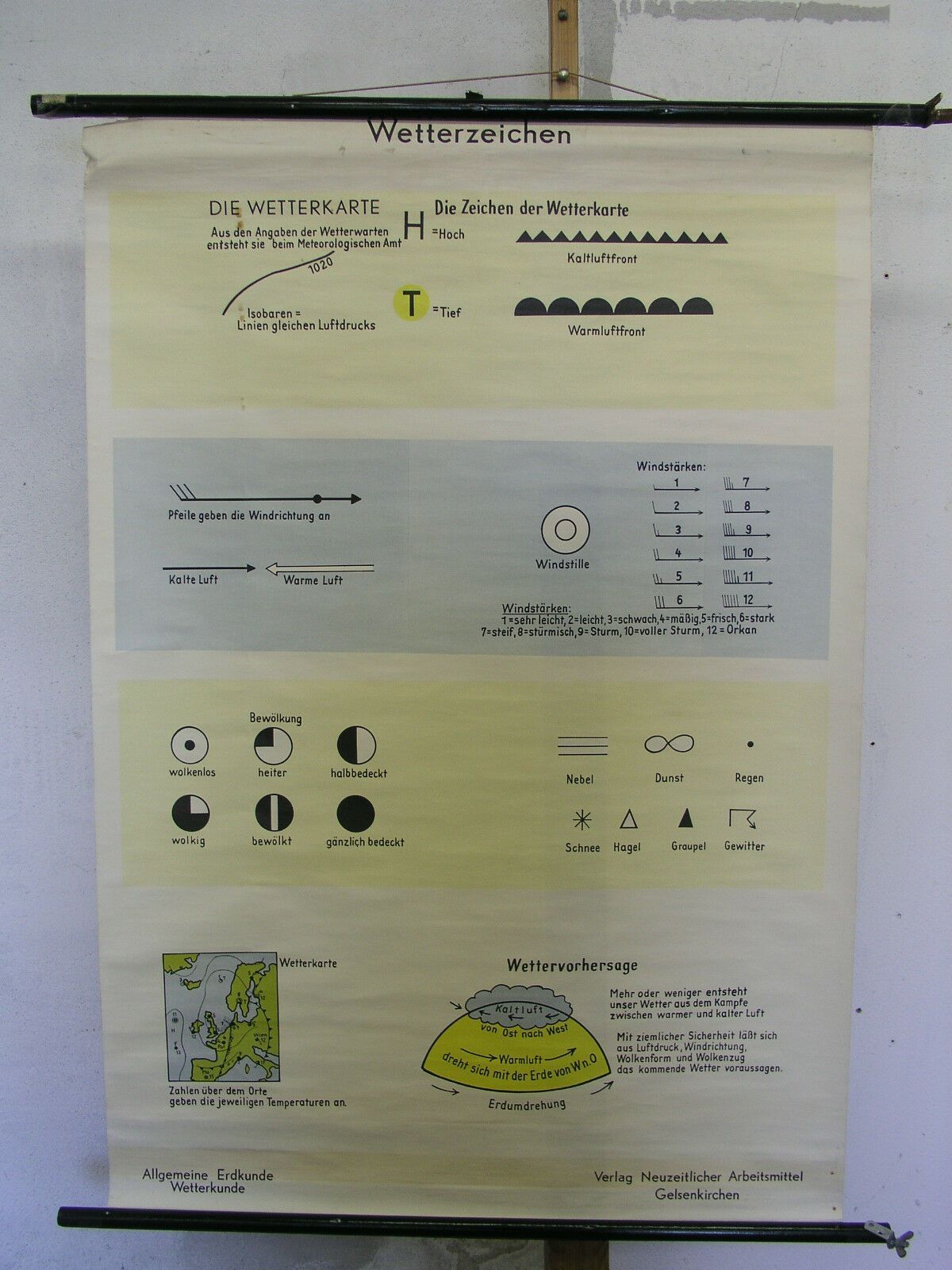 Schulwandbild schöne alte Schulkarte Wetterzeichen 80x116cm vintage map 1960 Siehe in der Liste unter NrL460 All. Wetterkunde Wetterzeichen (WM125) Kartensammler (allumfassend...speziell deutsche bezahlbare Karten ab 1900) verkauft hier seine doppelten Exemplare der Schulwandkarten ( Wandkarte Wandk