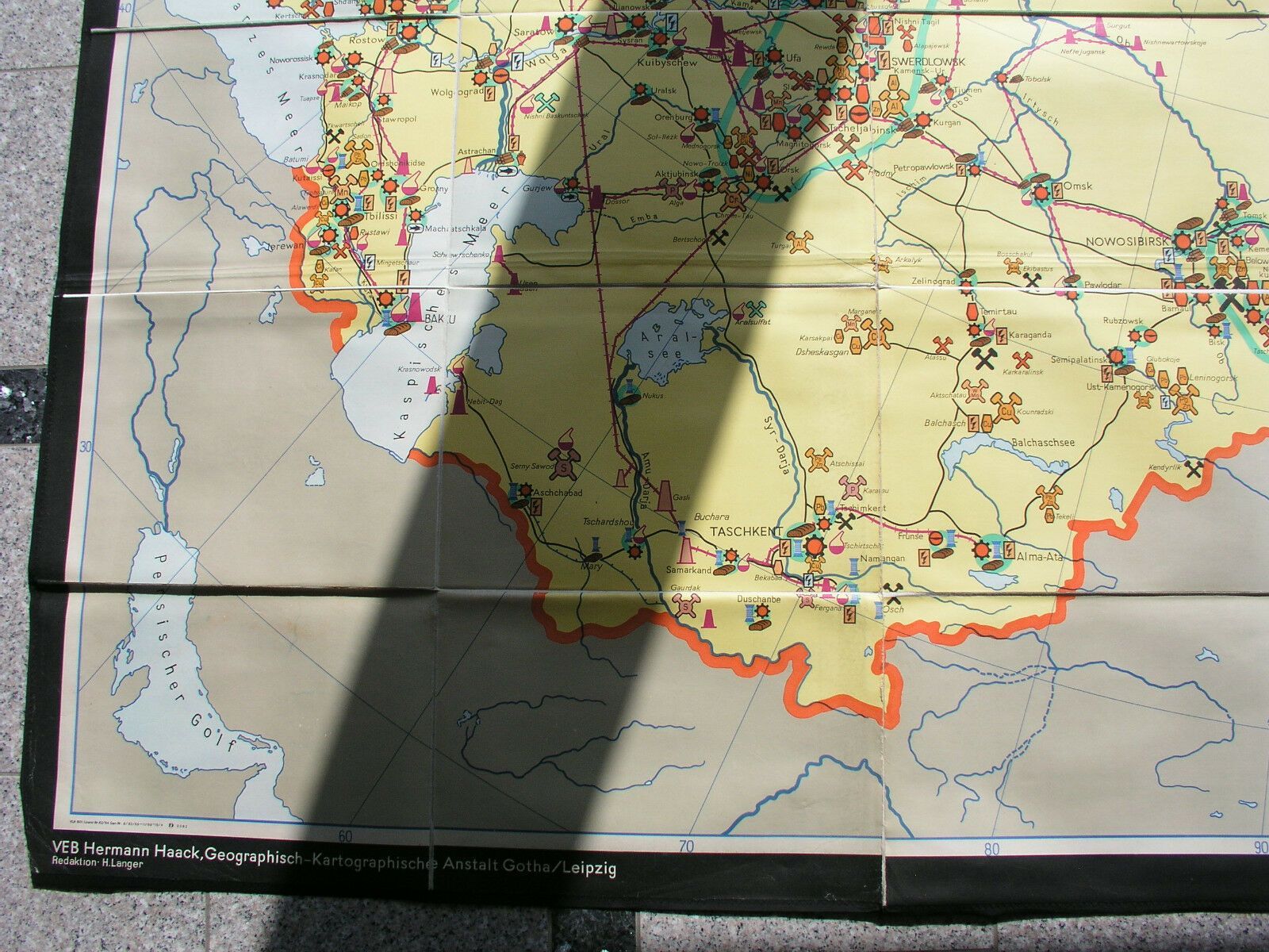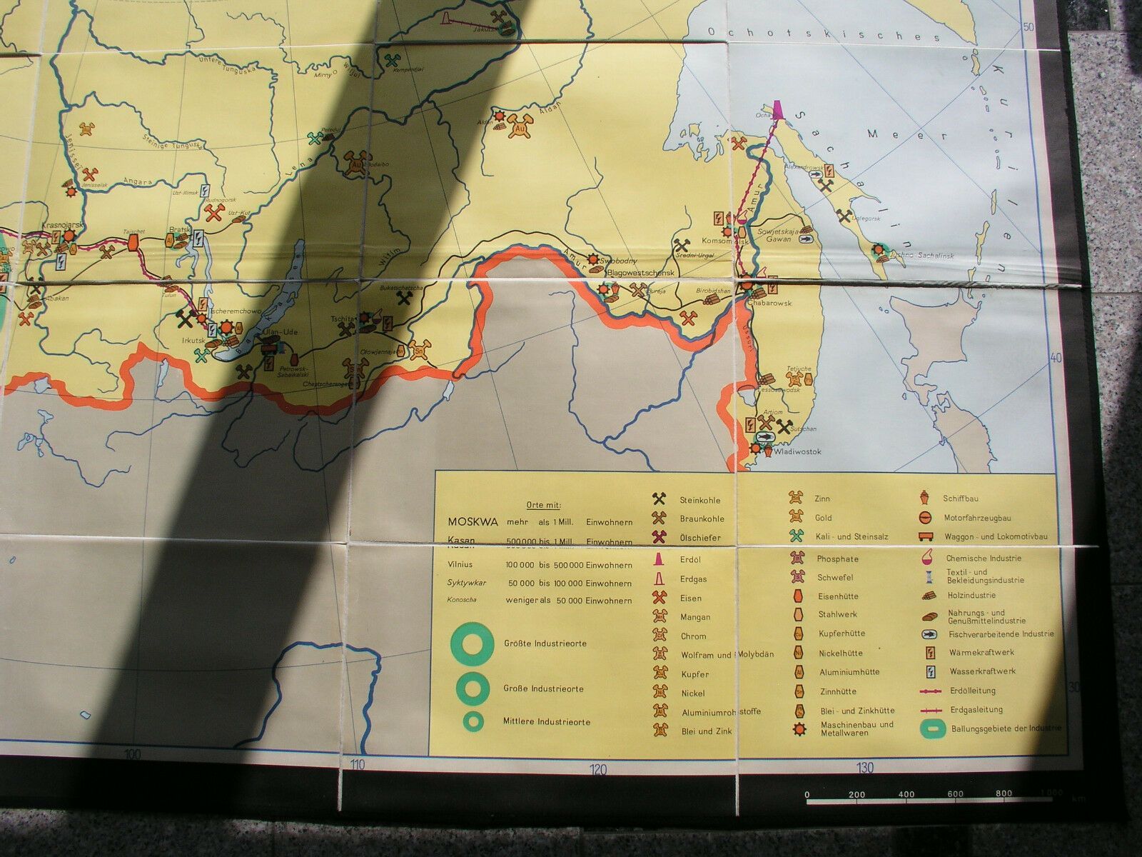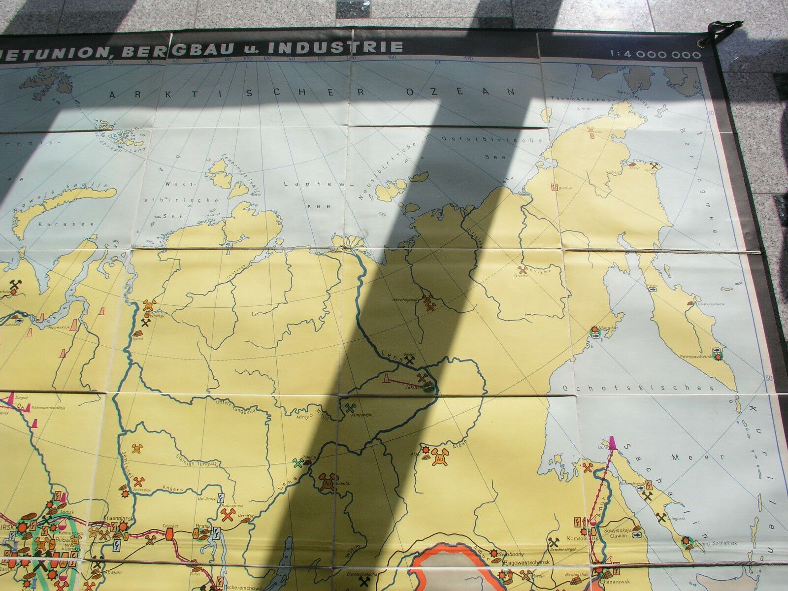 Schulwandkarte Bergbau Russland 233x165 1969 vintage wall map card russia mining