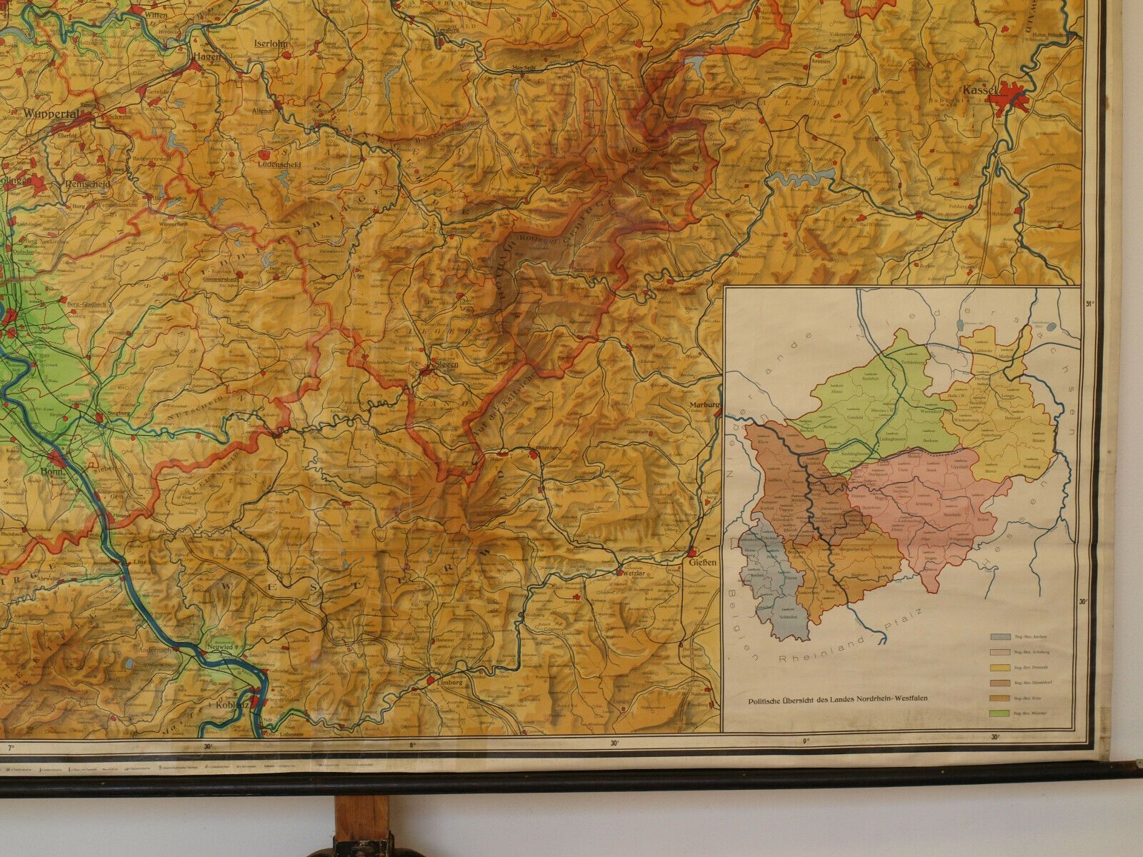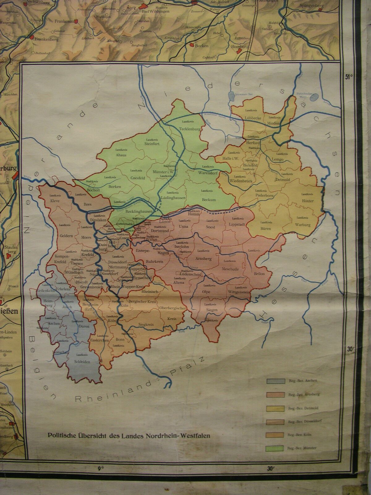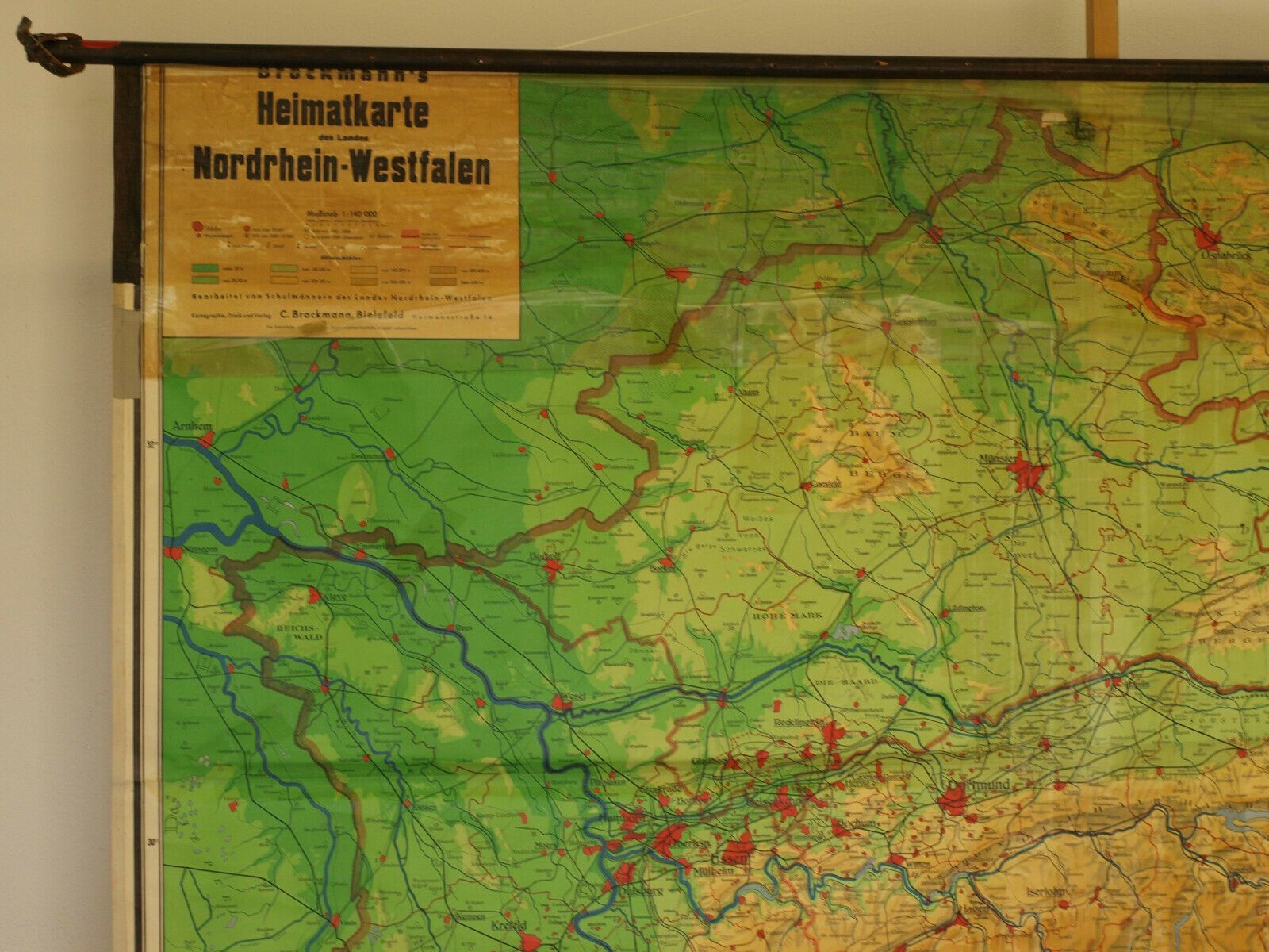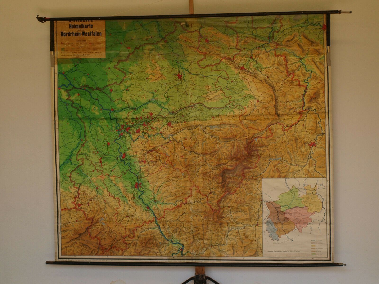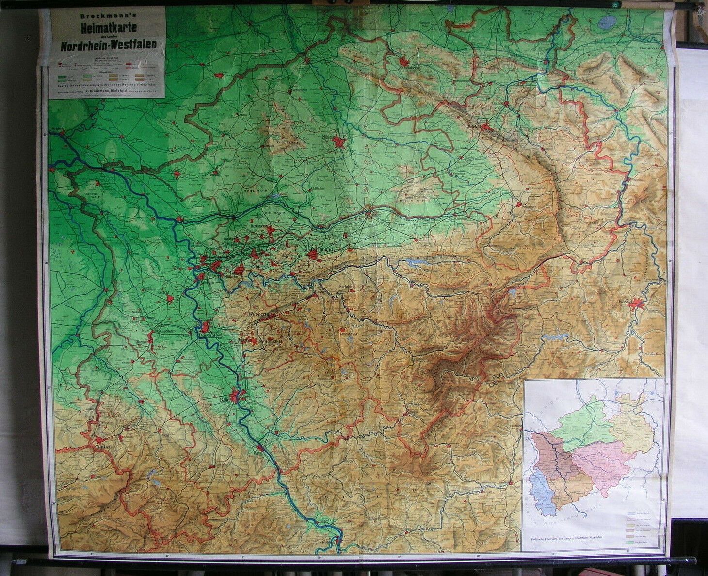Schulwandkarte Brockmanns Heimatkarte Nordrhein-Westfalen 204x177 1955 vintage
