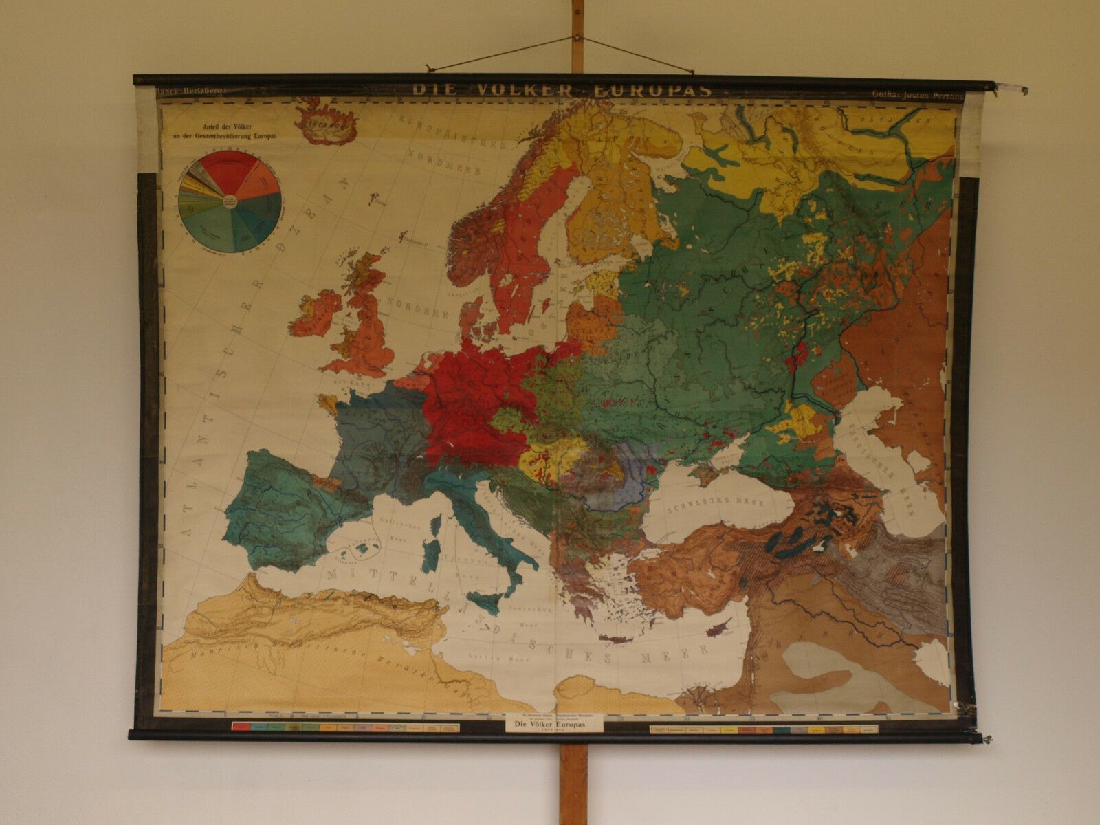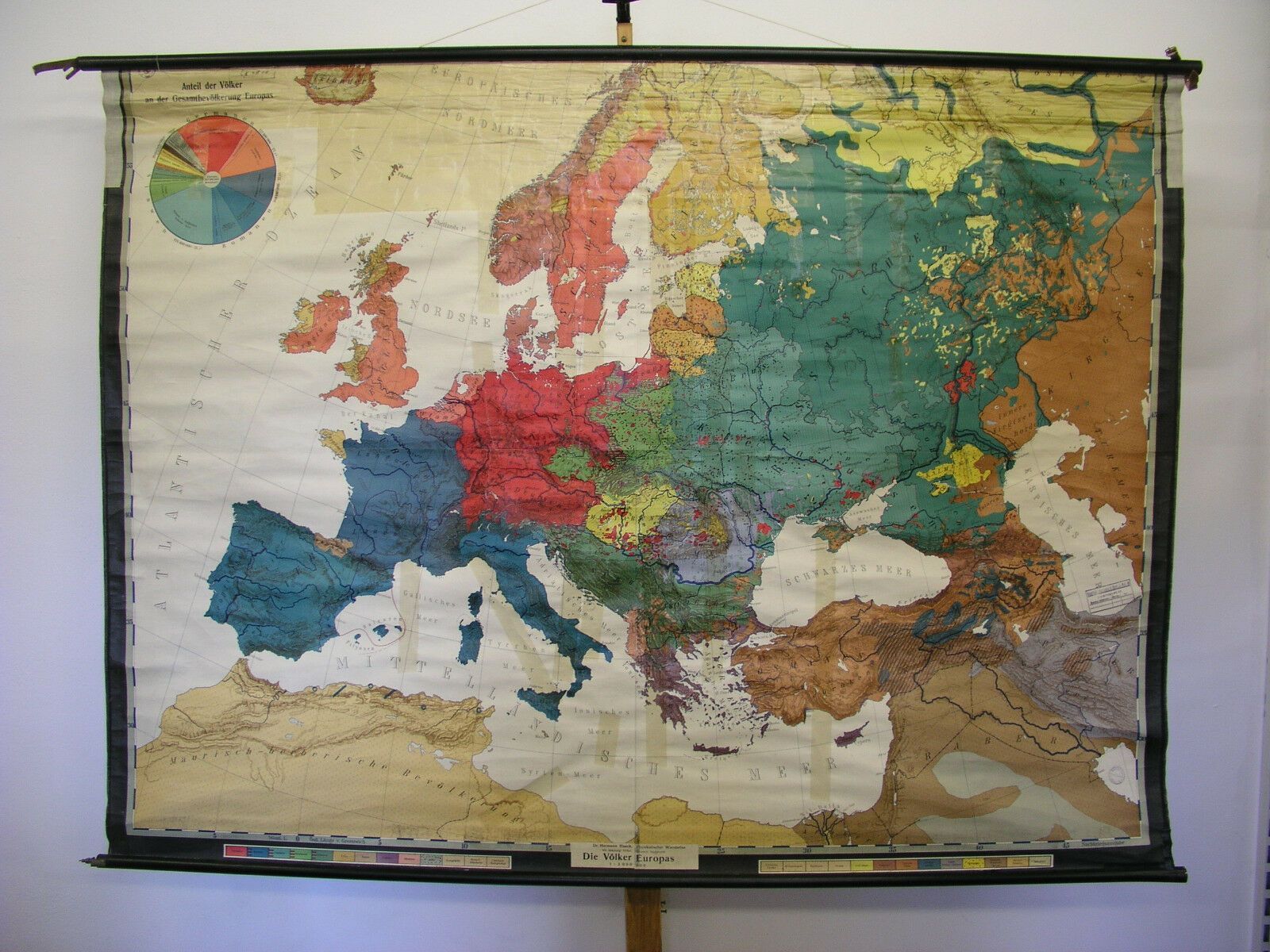 Schulwandkarte Die Völker Europas 206x151 1925 vintage ethnic group nation map