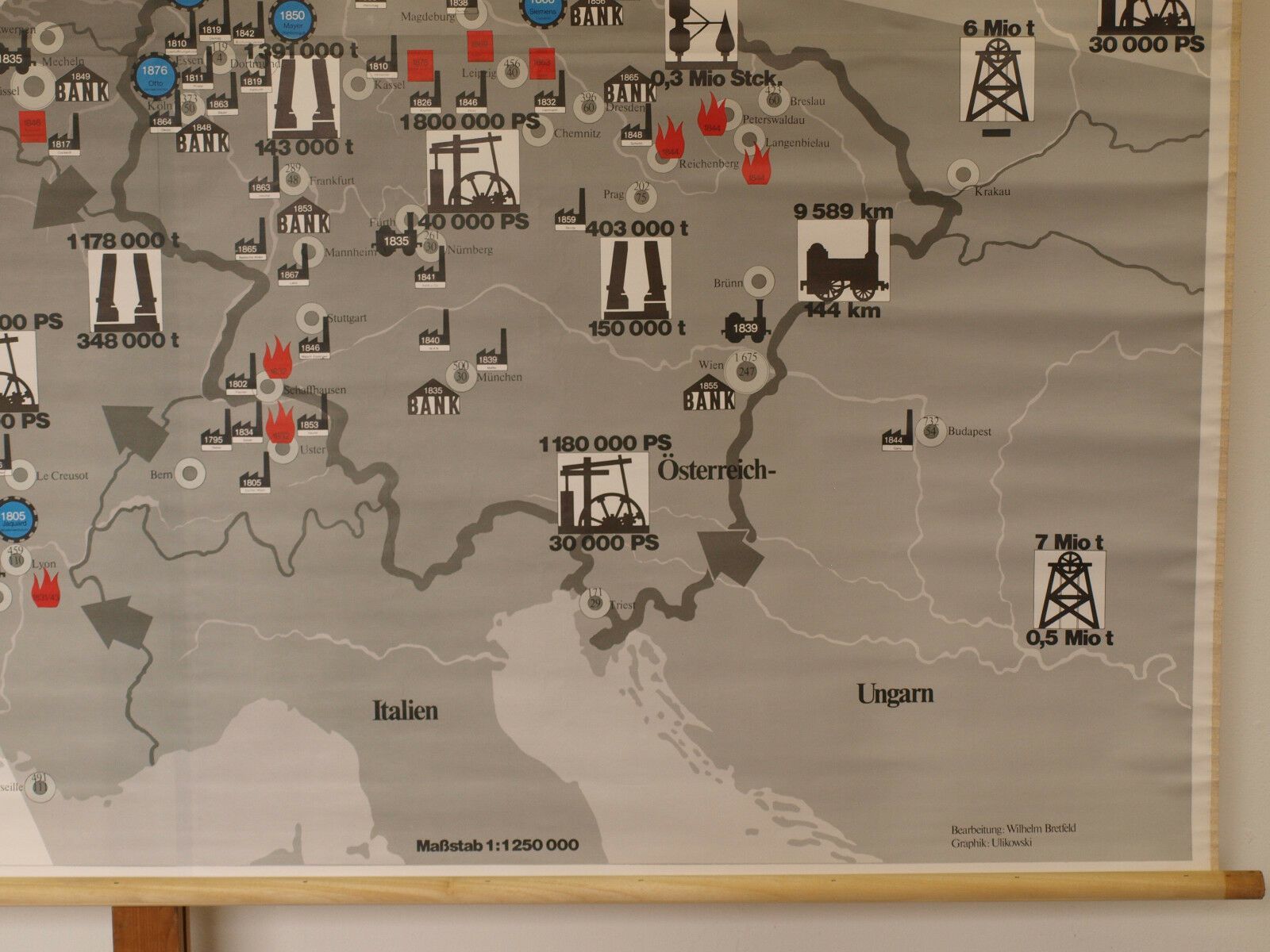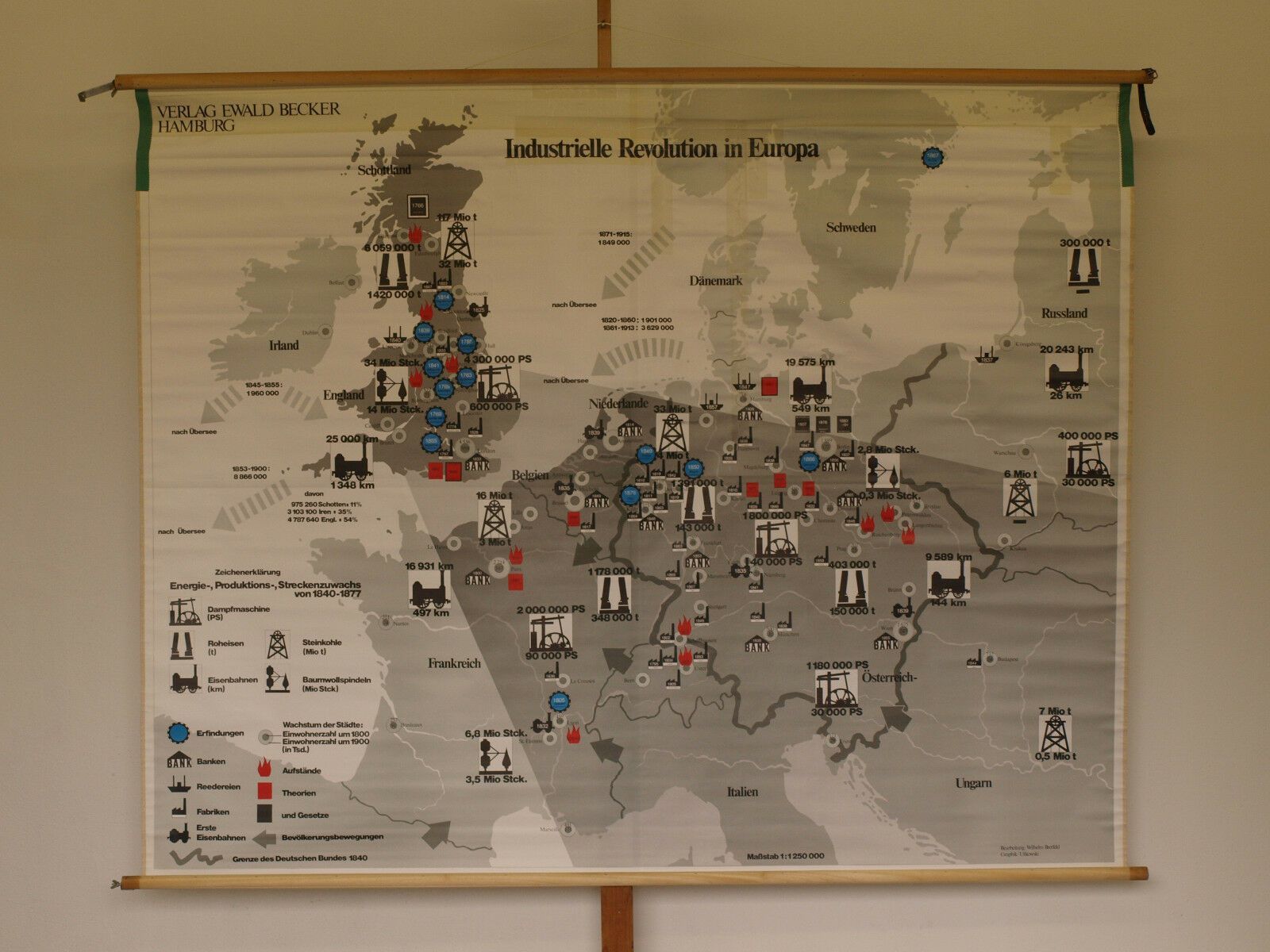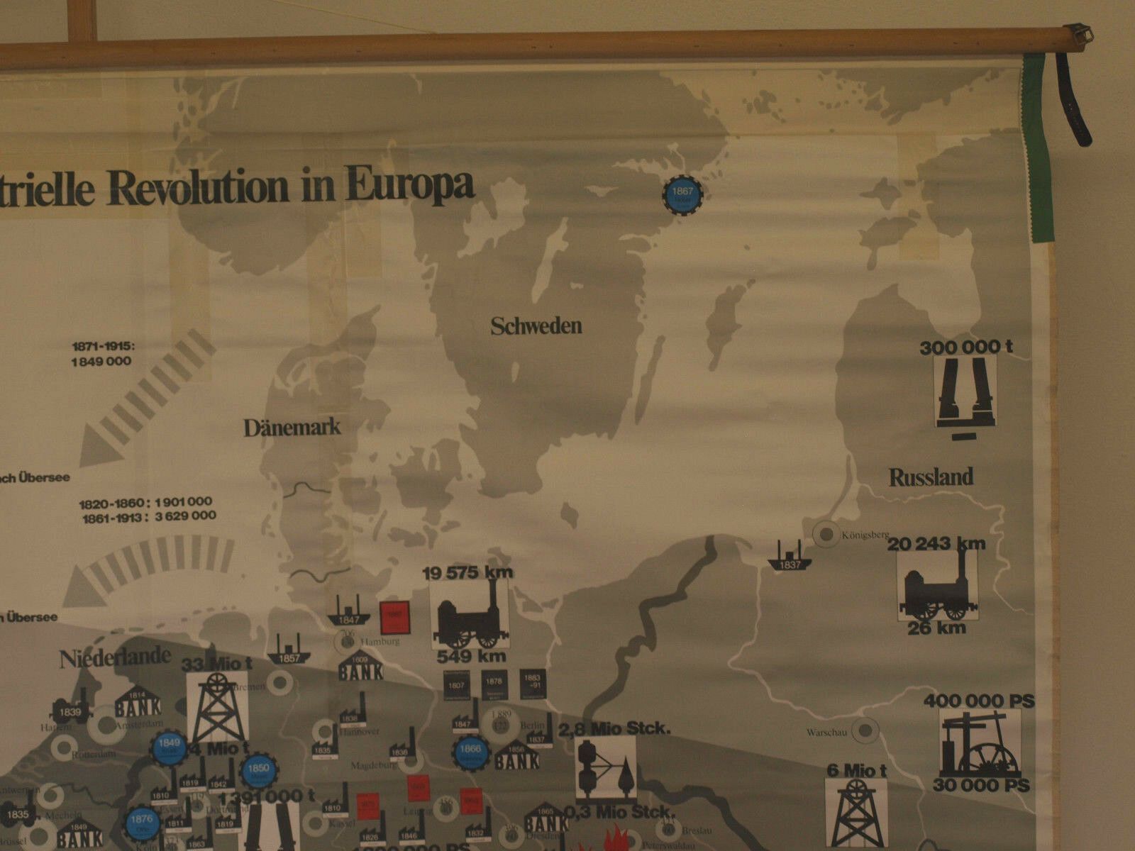Schulwandkarte Industrielle Revolution in Europa 207x166cm 1970 vintage map