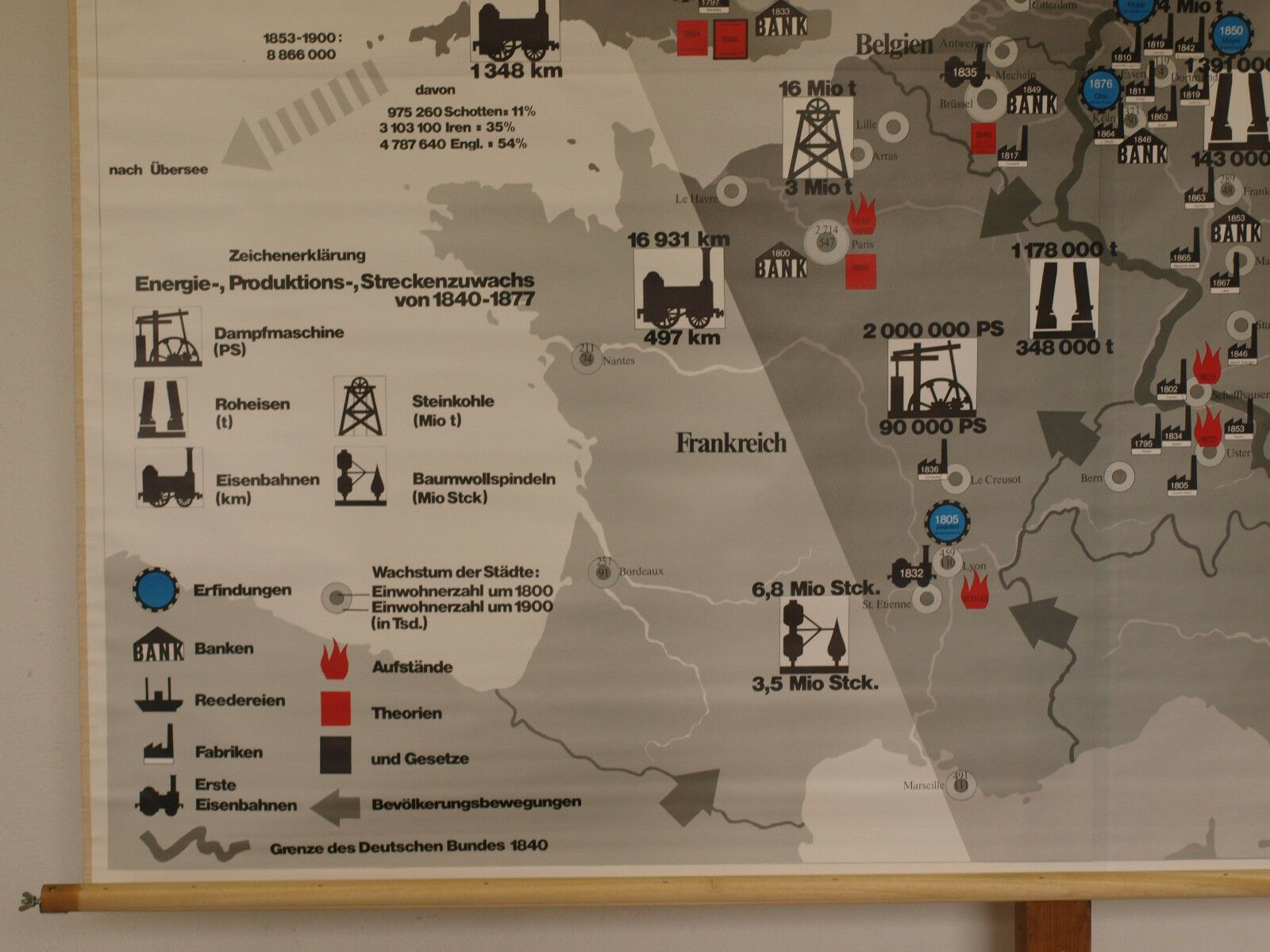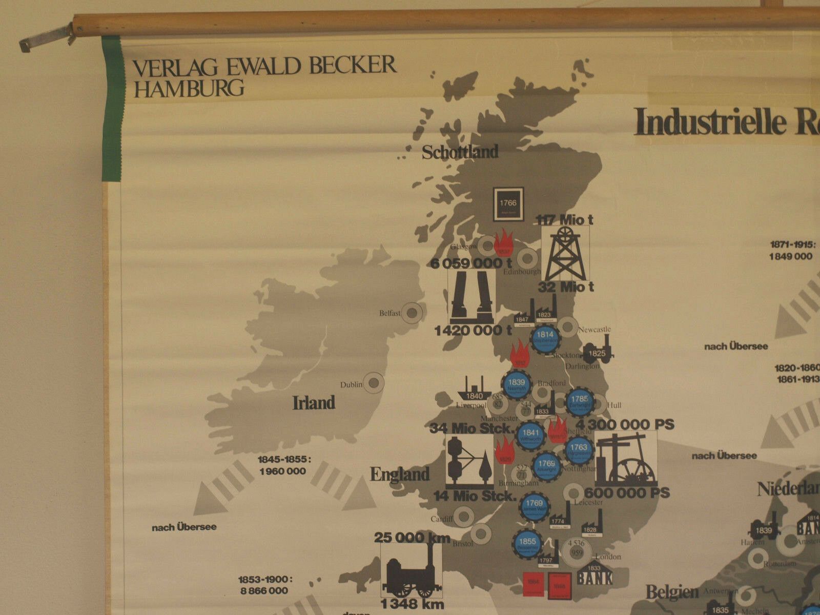 Schulwandkarte Industrielle Revolution in Europa 207x166cm 1970 vintage map Siehe in der Liste unter Nr. 1143 Industrielle Revolution in Europa (KT213) 1.-5.Bild !, kein Bild von meinem Sammlungsexemplar, zum Vergleich hier beigefügt Kartensammler (allumfassend...speziell deutsche bezahlbare Karten