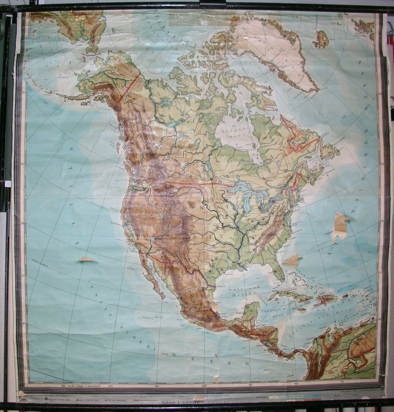 Schulwandkarte map Karte Nordamerika USA Kanada North America 6M 155x162cm 1947
