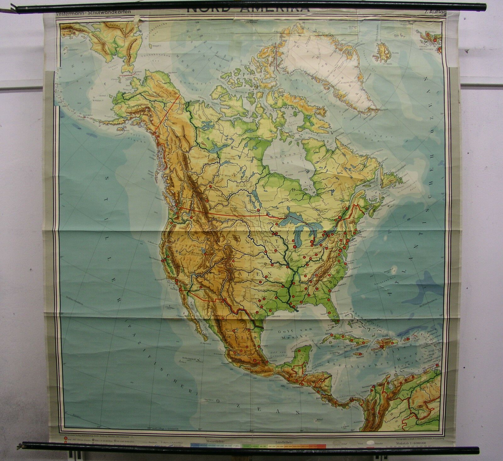Schulwandkarte map Karte Nordamerika USA Kanada North America 6Mio 1956 156x164c