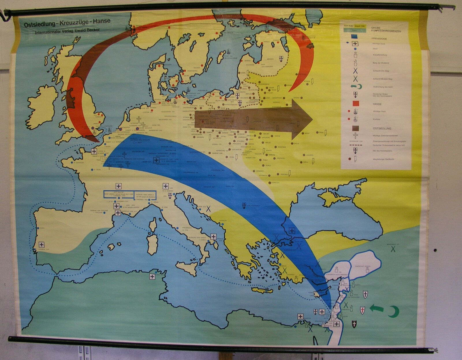 Schulwandkarte map Ostsiedlung Kreuzzüge Hanse Ritter Bauern Händler 208x166cm Siehe in der Liste unter Nr. 373 Ostsiedlung-Kreuzzüge-Hanse (NT204) Kartensammler (allumfassend...speziell deutsche bezahlbare Karten ab 1900) verkauft hier seine doppelten Exemplare der Schulwandkarten ( Wandkarte Wandk