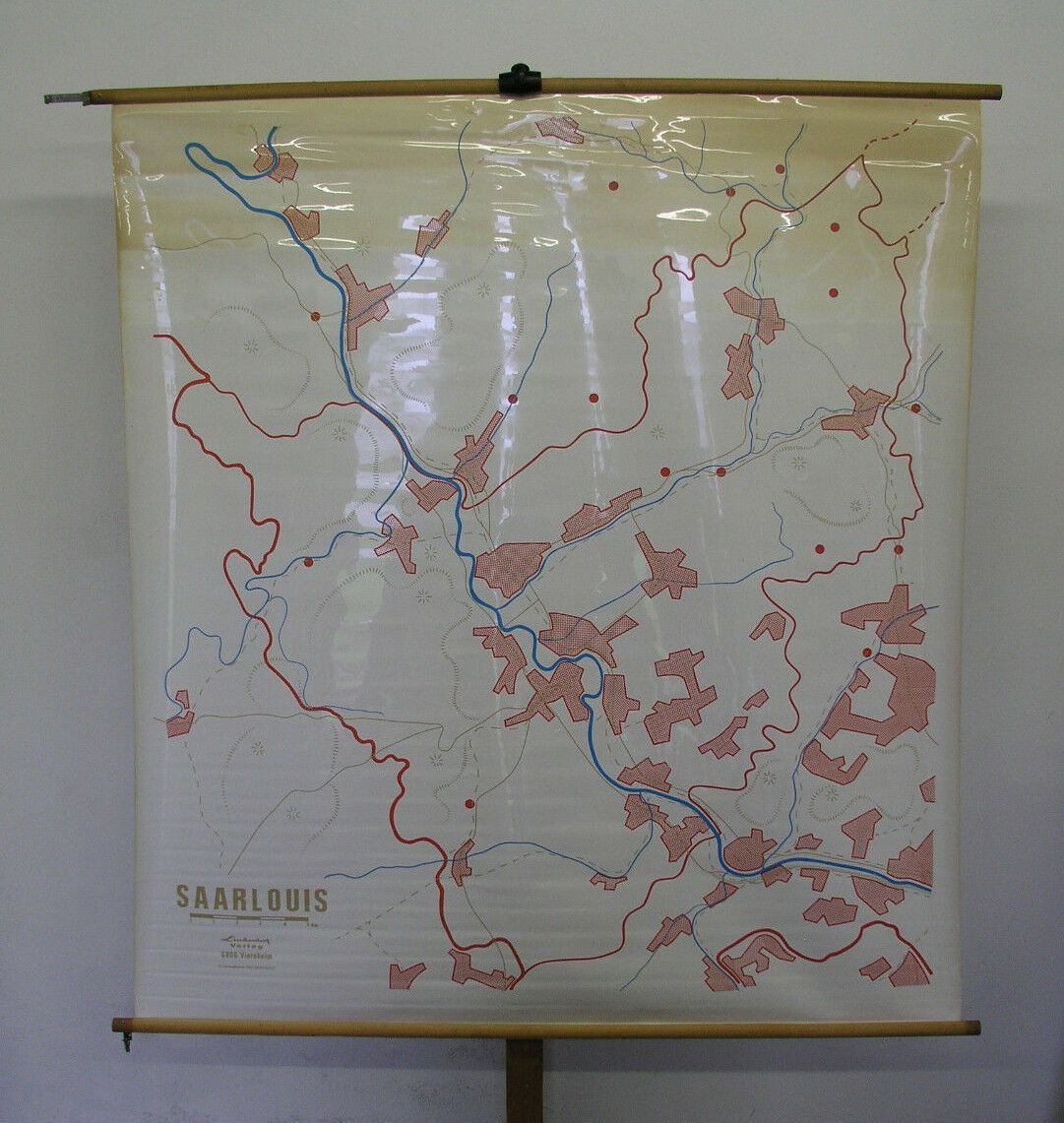 Schulwandkarte Saarlouis Arbeitskarte vintage wall map 151x165c 1960 abwaschbar