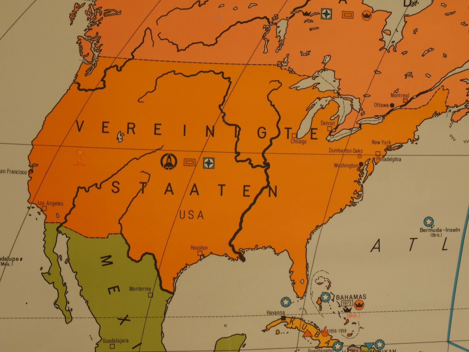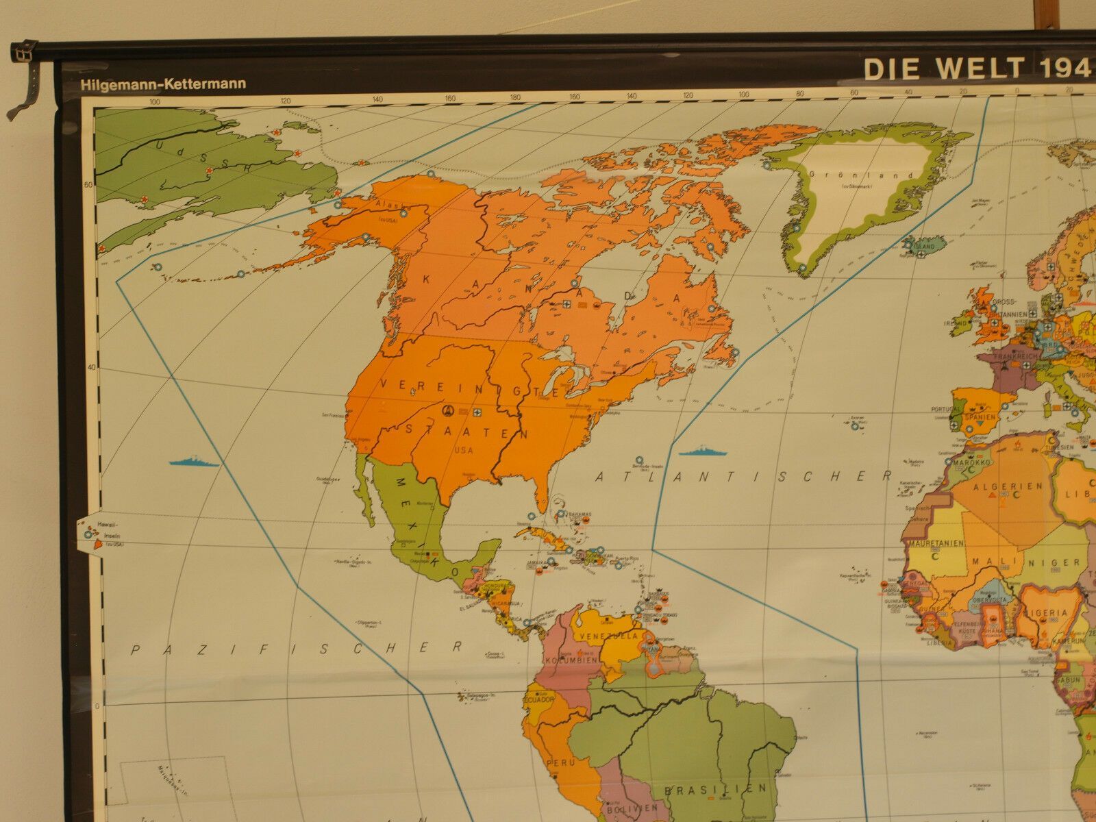 Schulwandkarte schöne alte Weltkarte 1945-1975 269x166 vintage world map 1975