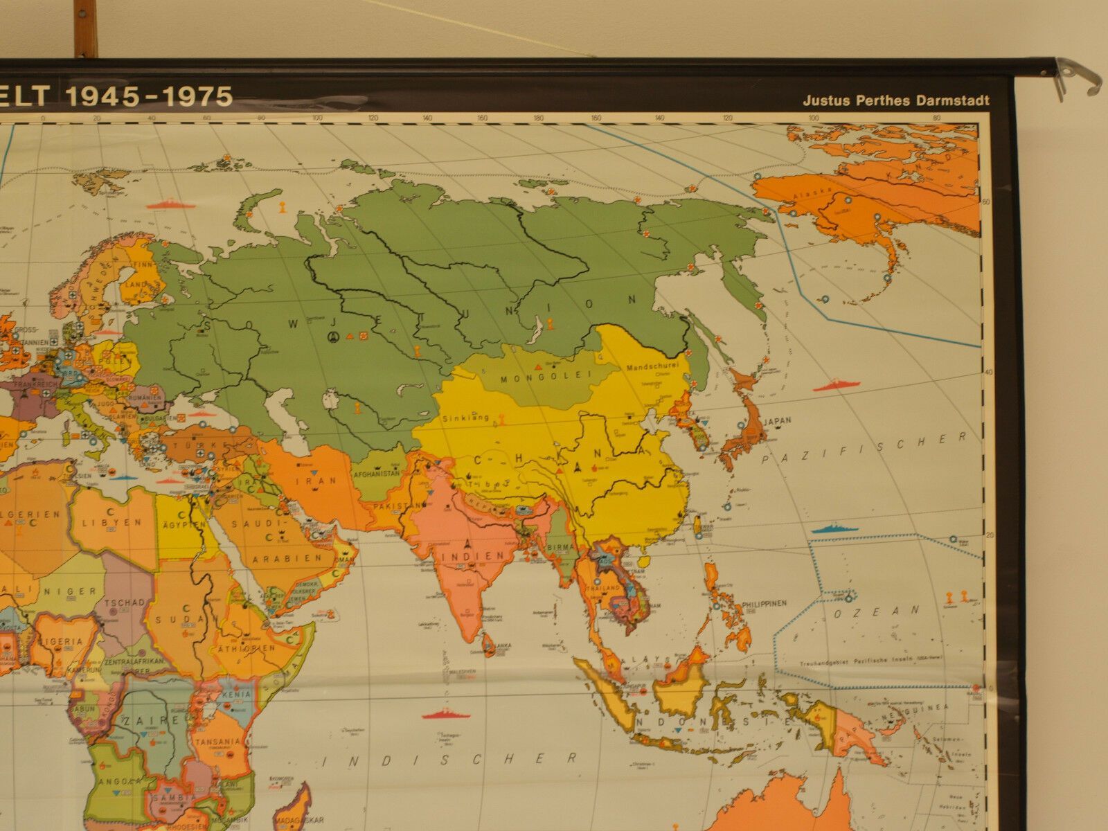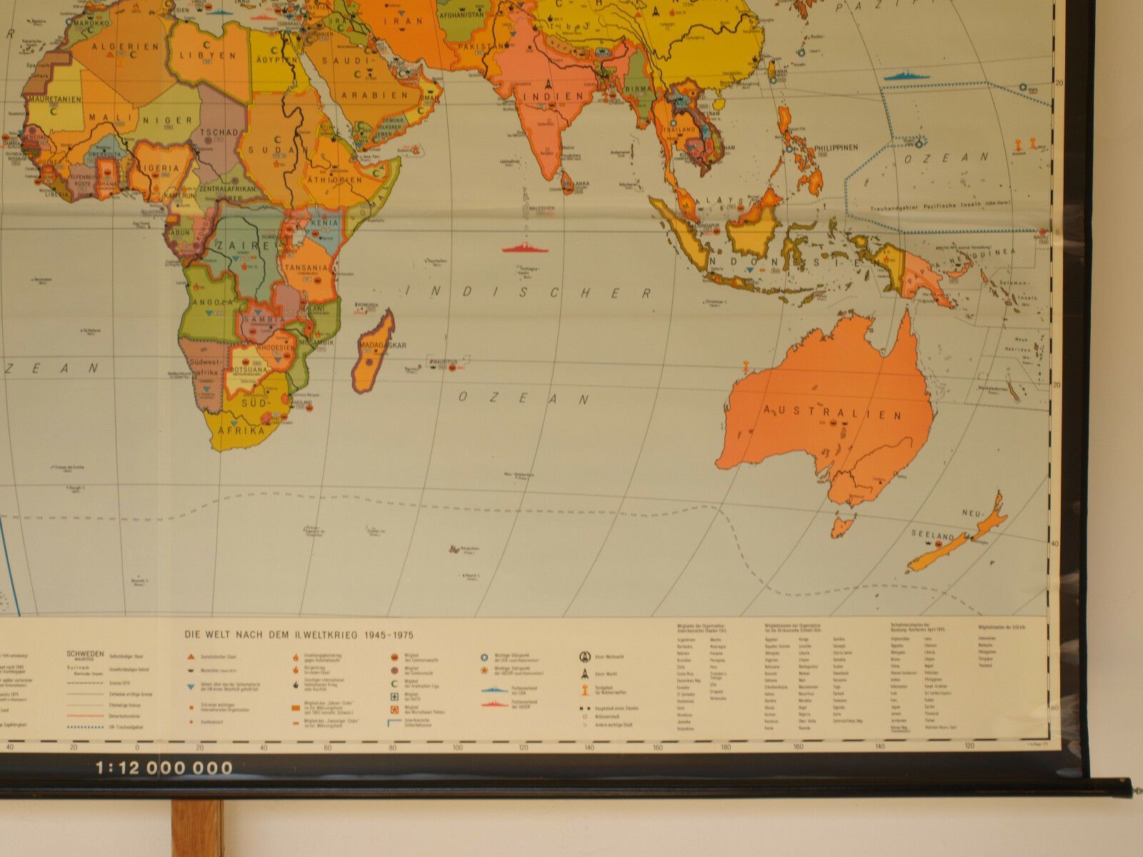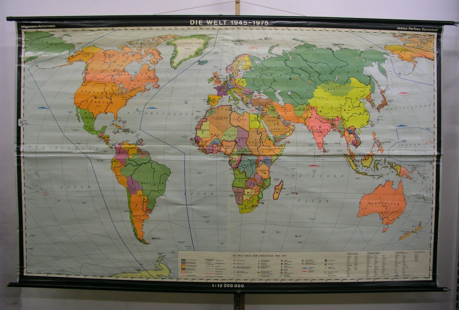 Schulwandkarte schöne alte Weltkarte 1945-1975 269x166 vintage world map 1975 Siehe in der Liste unter Nr. 366 Die Welt 1945-1975 nach dem II.Weltkrieg (KV13) 1.-9.Bild, 10.-12.Bild von typgleicher Karte beigefügt Kartensammler (allumfassend...speziell deutsche bezahlbare Karten ab 1900) verkauft hi