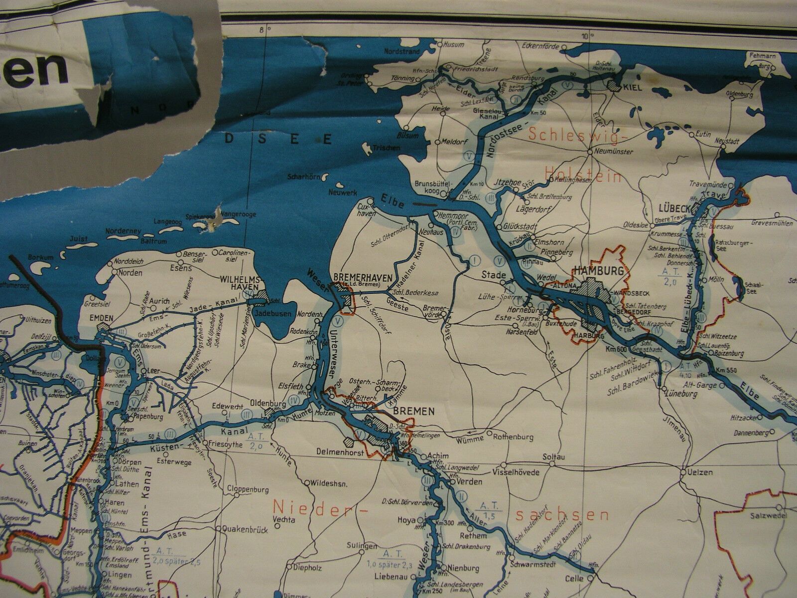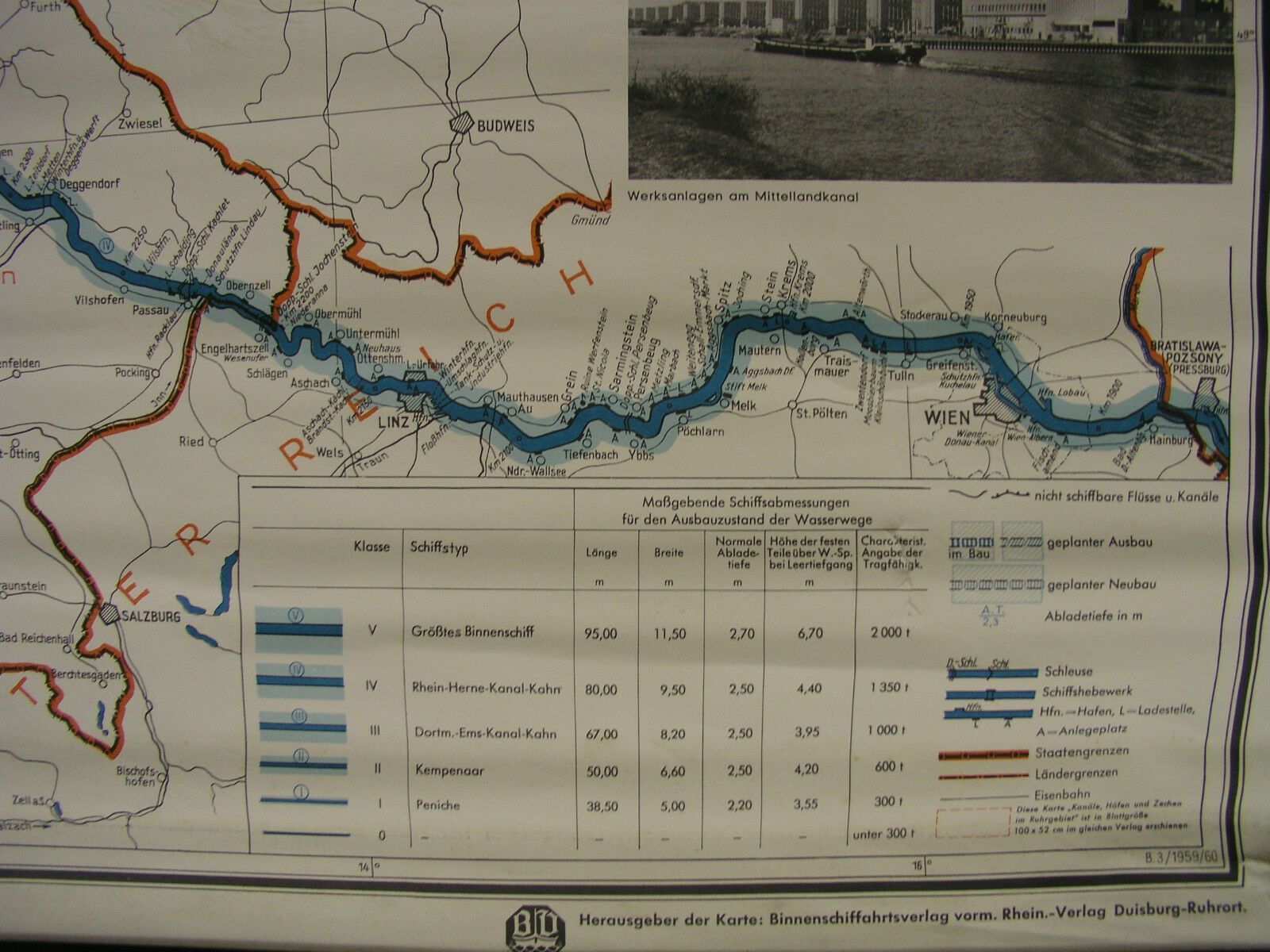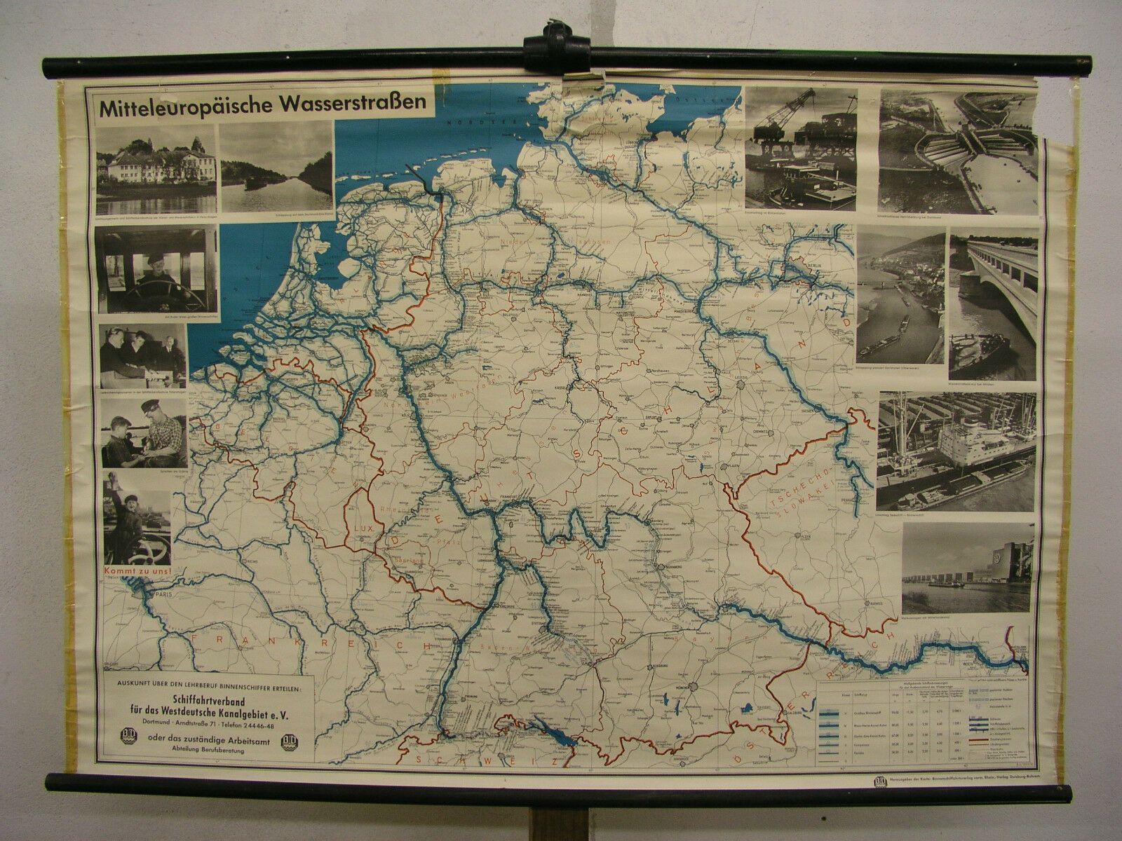 Schulwandkarte Schiff-Fahrt Kanäle Flüsse Donau Rhein Maas Elbe Main Saar 115x80 Siehe in der Liste unter Nr. 810 Mitteleuropäische Wasserstraßen (TR278 Kartensammler (allumfassend...speziell deutsche bezahlbare Karten ab 1900) verkauft hier seine doppelten Exemplare der Schulwandkarten ( Wandkarte