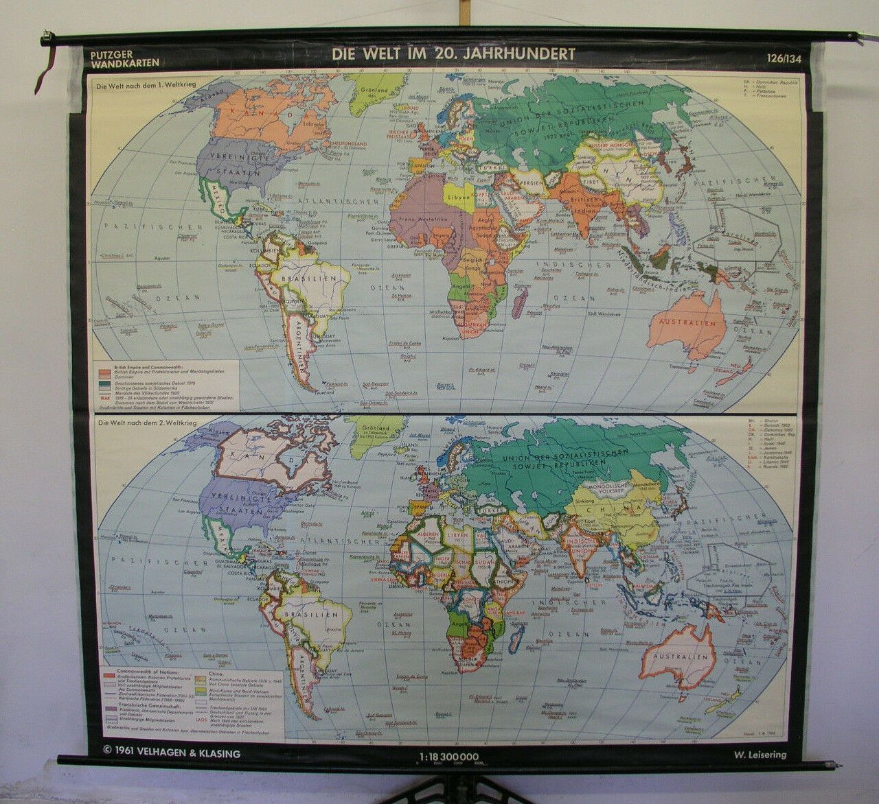 Schulwandkarte schöne alte Weltkarte 20Jahrh.1914 195x190 vintage world map 1961 Siehe in der Liste unter Nr. 699 Die Welt im 20. Jahrhundert (KR959) Detailfoto von dieser Karte Kartensammler (allumfassend...speziell deutsche bezahlbare Karten ab 1900) verkauft hier seine doppelten Exemplare der Sch