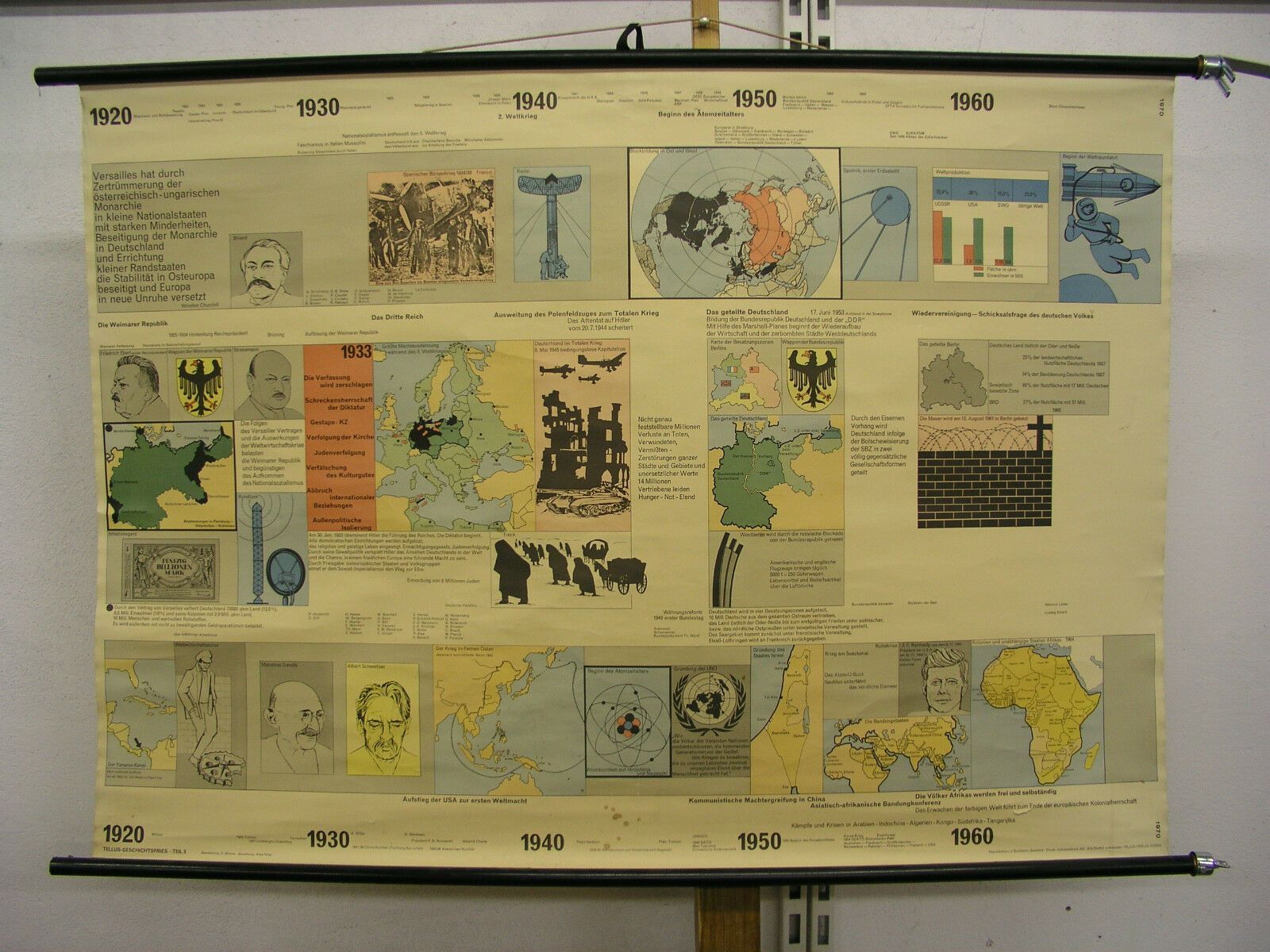Schulwandkarte Wandbild Geschichte der Menschheit 1920-1970 Moderne 117x84 1970