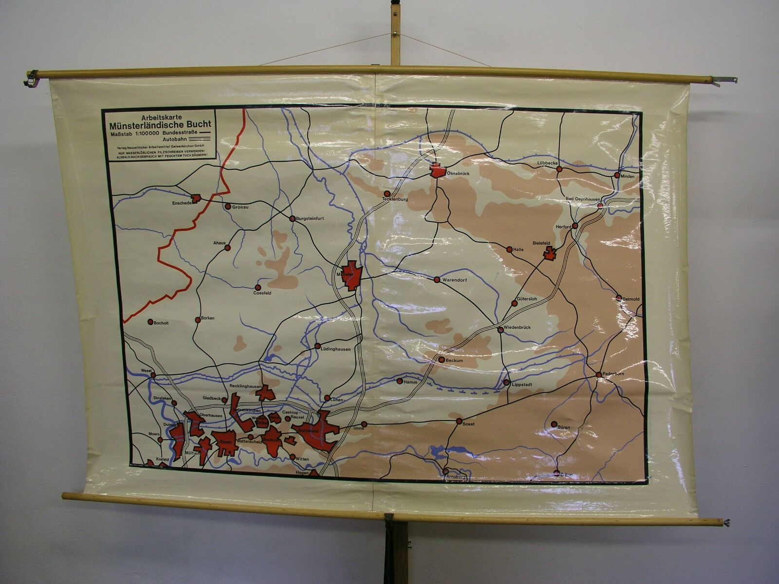 Schulwandkarte Wandkarte Karte Münsterländische Bucht Münsterland 196x134c 1960
