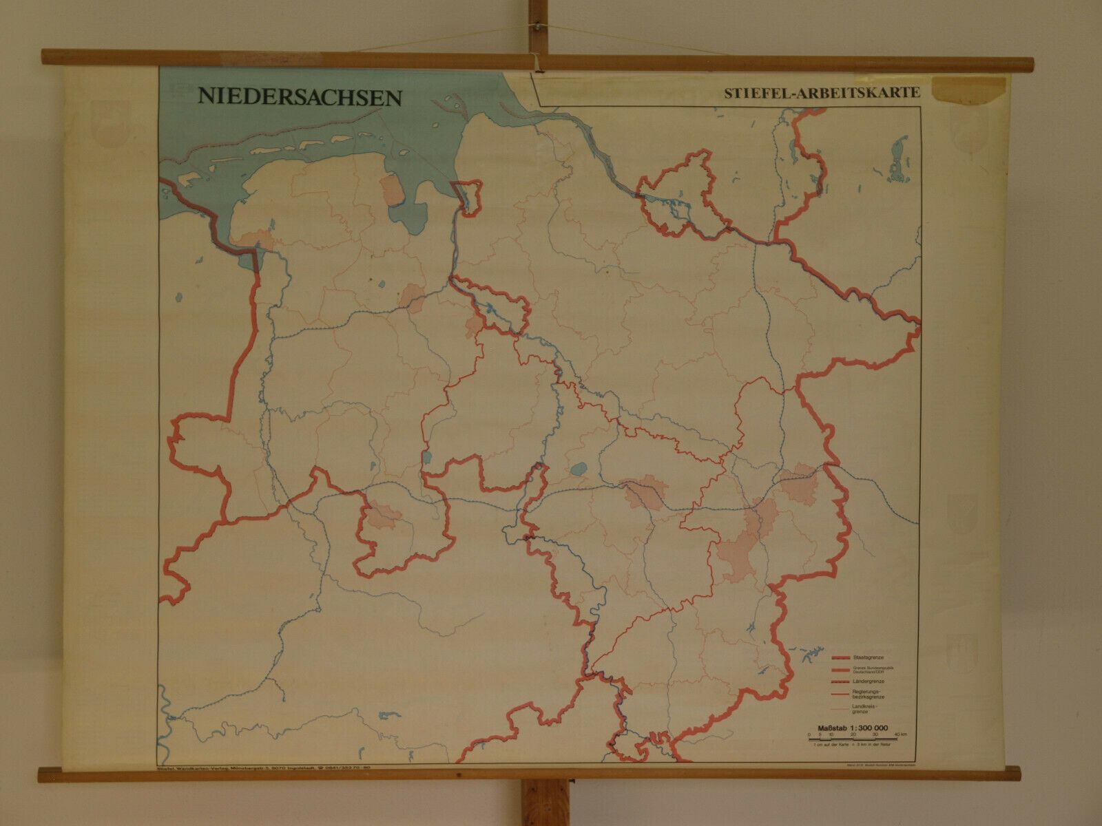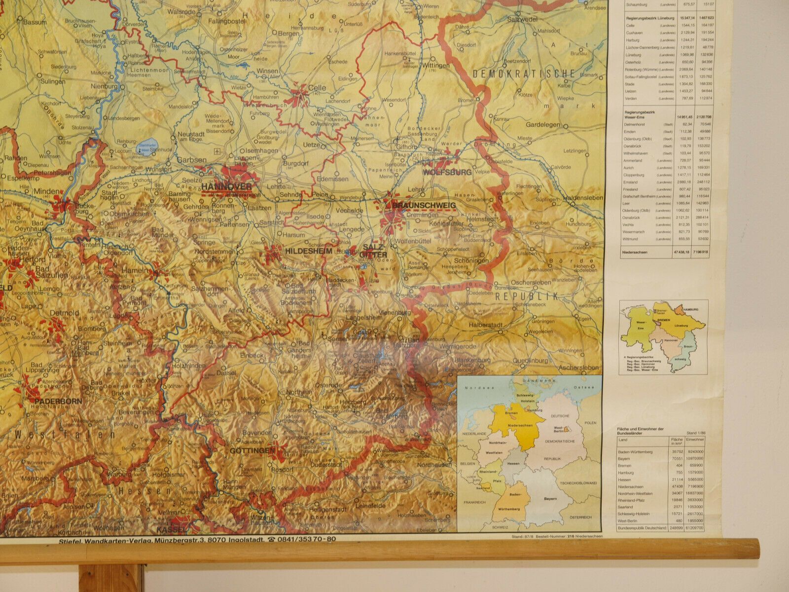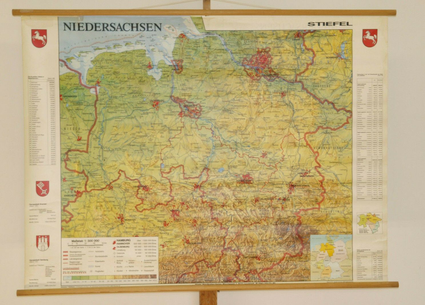 Schulwandkarte Wandkarte Niedersachsen 140x104 1987 Hamburg Bremen Platt vintage