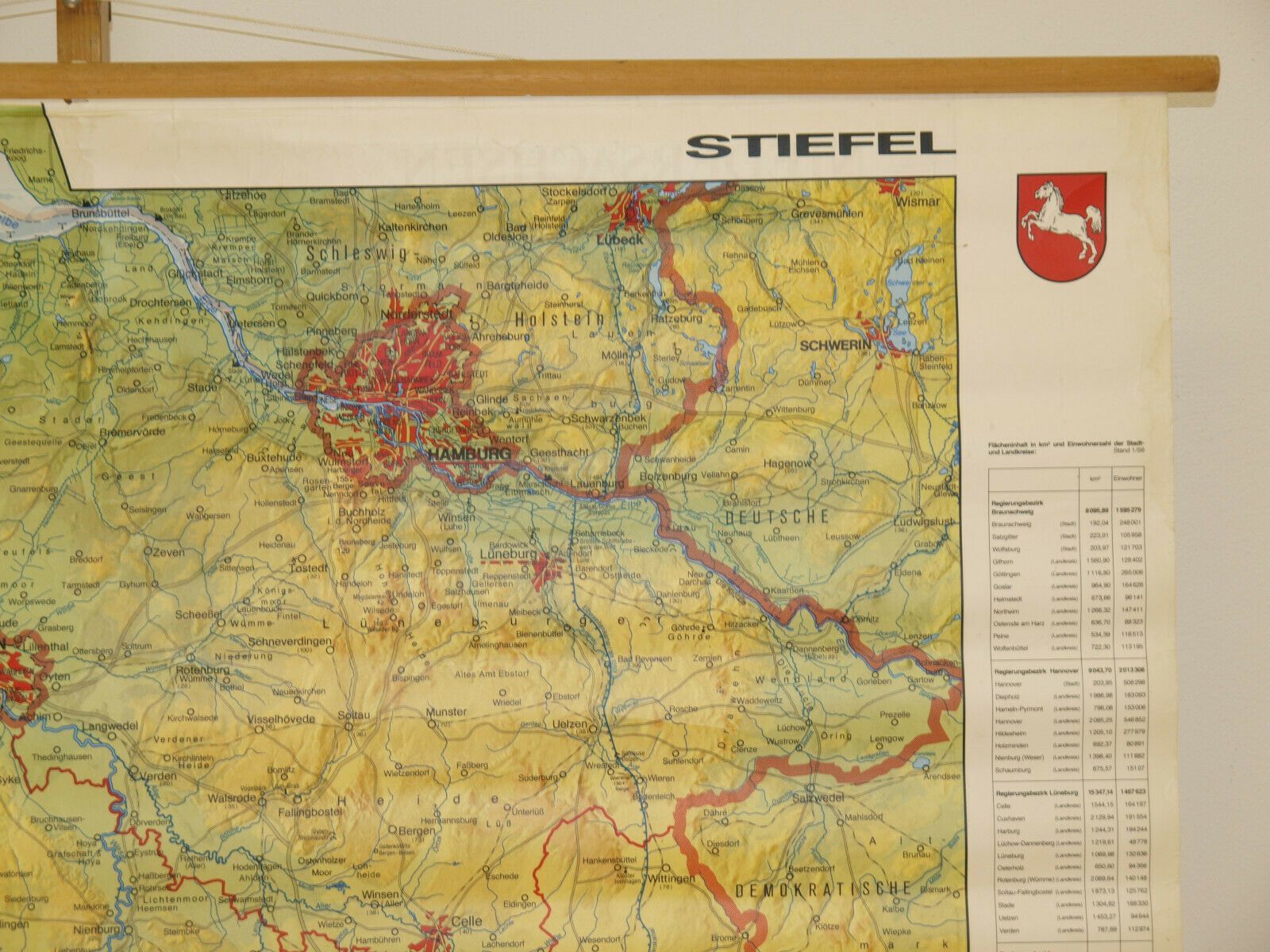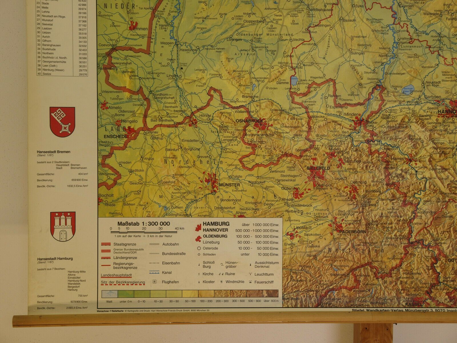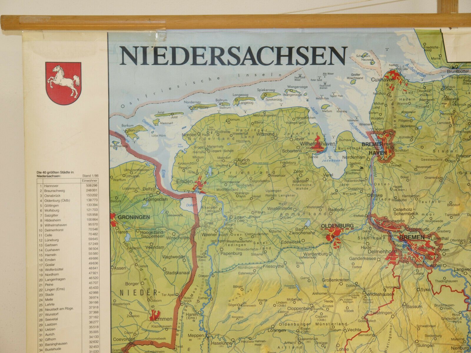 Schulwandkarte Wandkarte Niedersachsen 140x104 1987 Hamburg Bremen Platt vintage