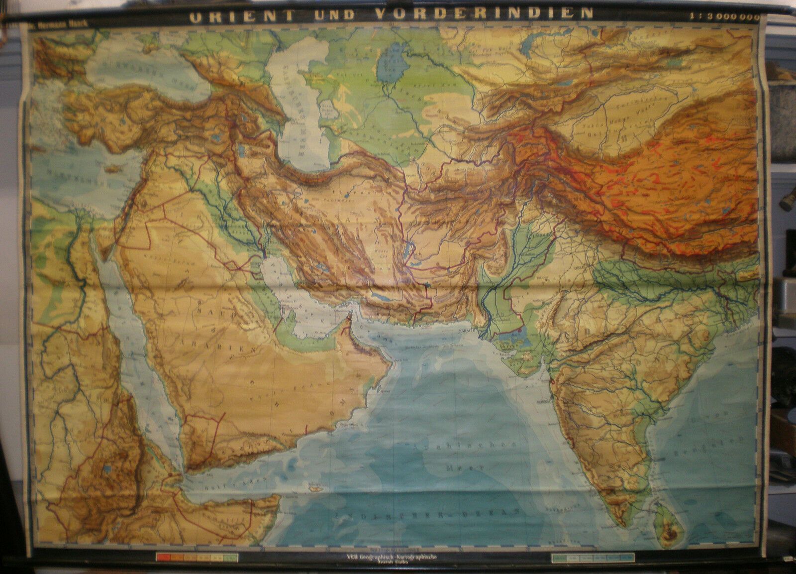 Schulwandkarte Wandkarte Schulkarte Orient Indien Kleinasien Türkei 215x157 1953