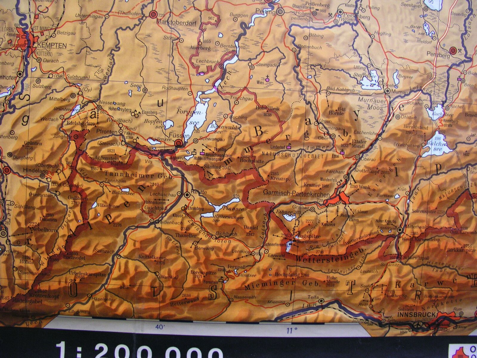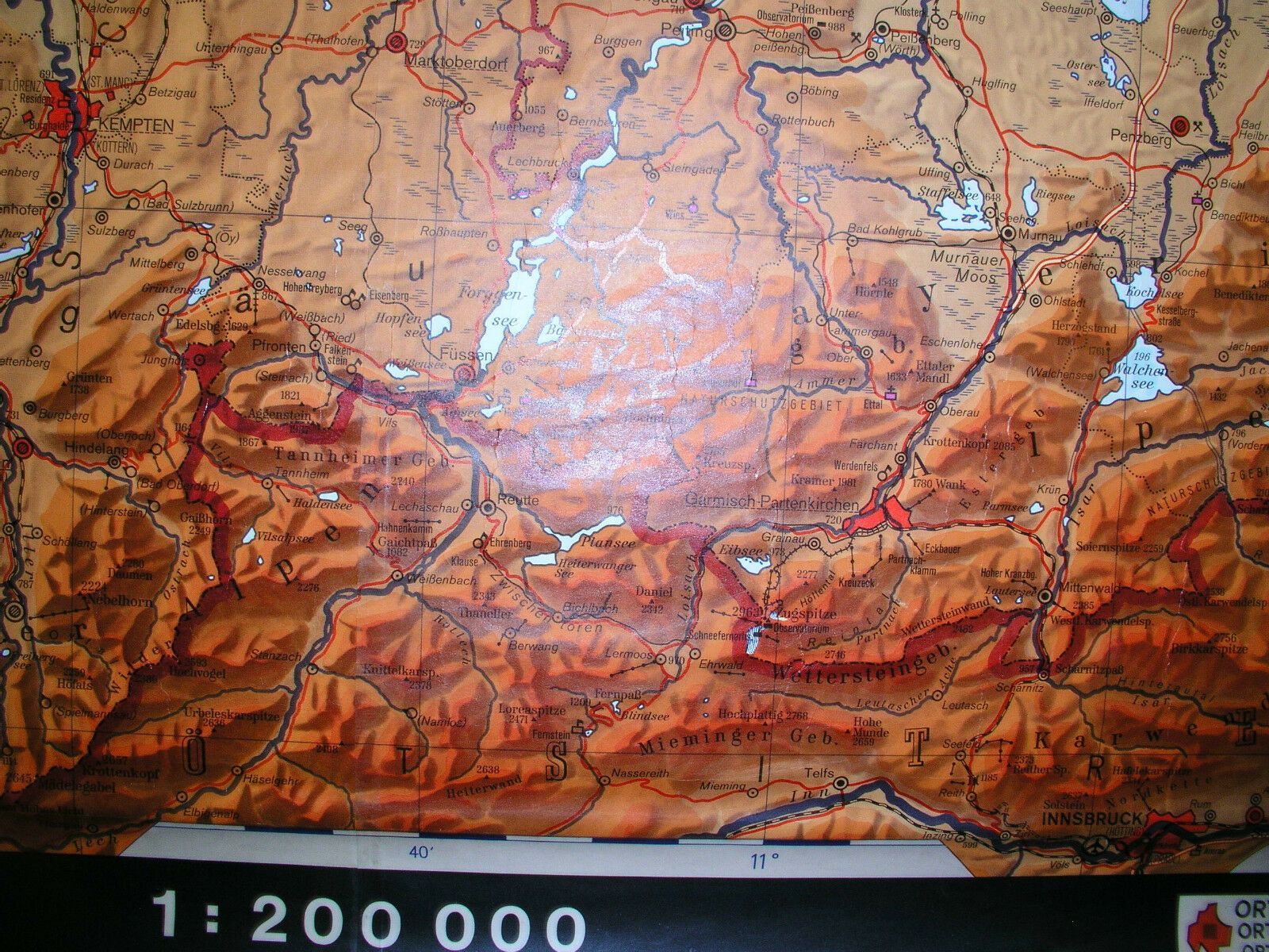 Schulwandkarte Wandkarte Schulkarte Rollkarte Alpen Süddeutschland 253x194c 1973