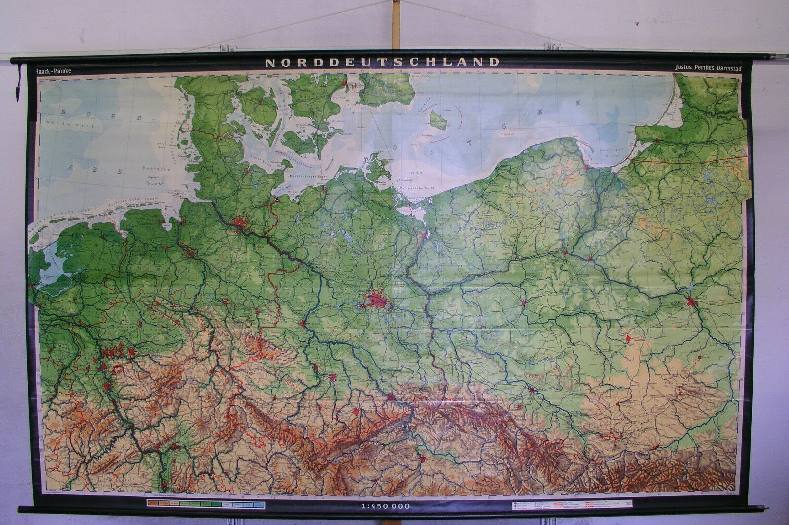 Schulwandkarte Wandkarte Schulkarte Rollkarte Alte Karte Norddeutschland 269x166