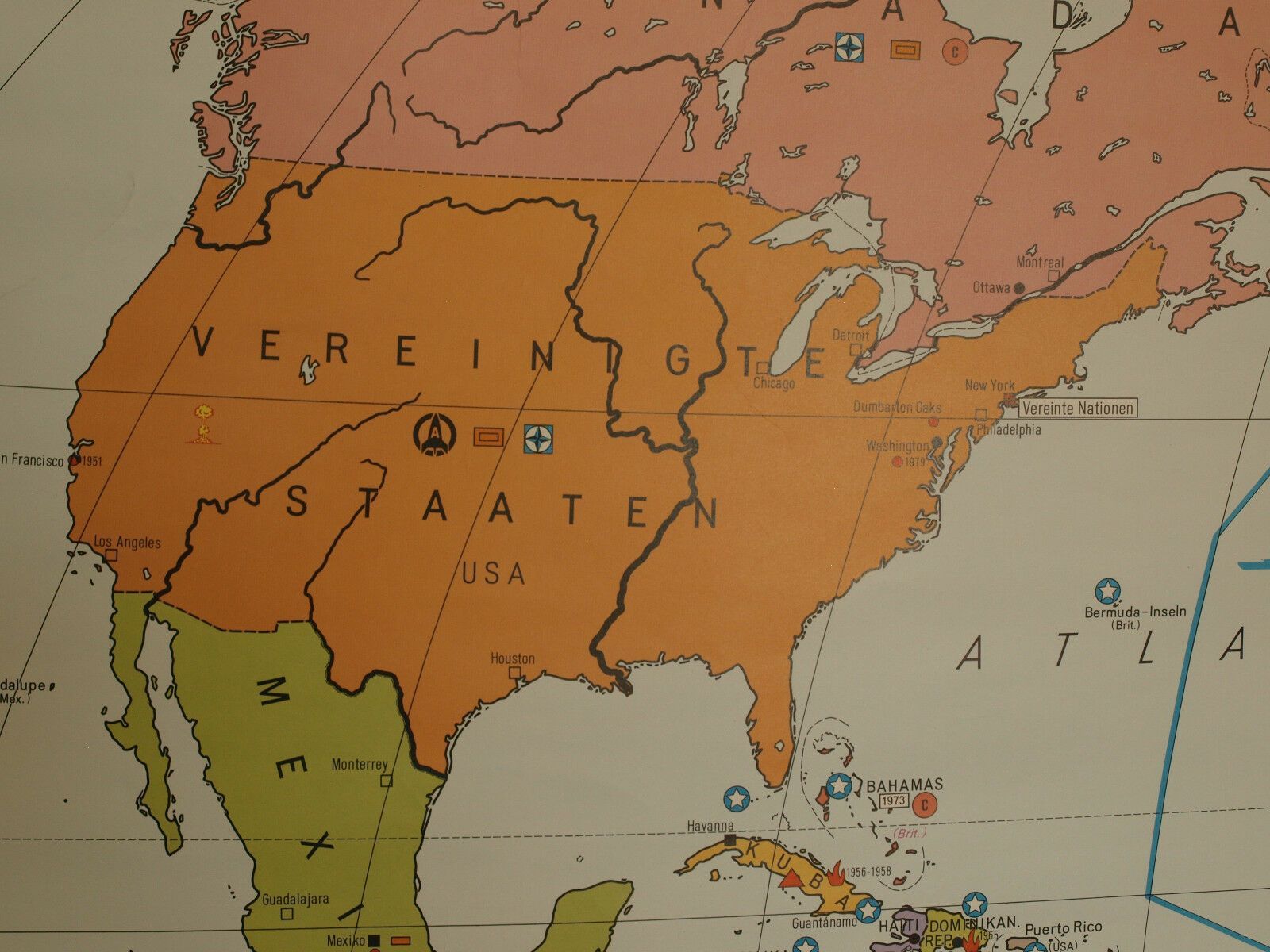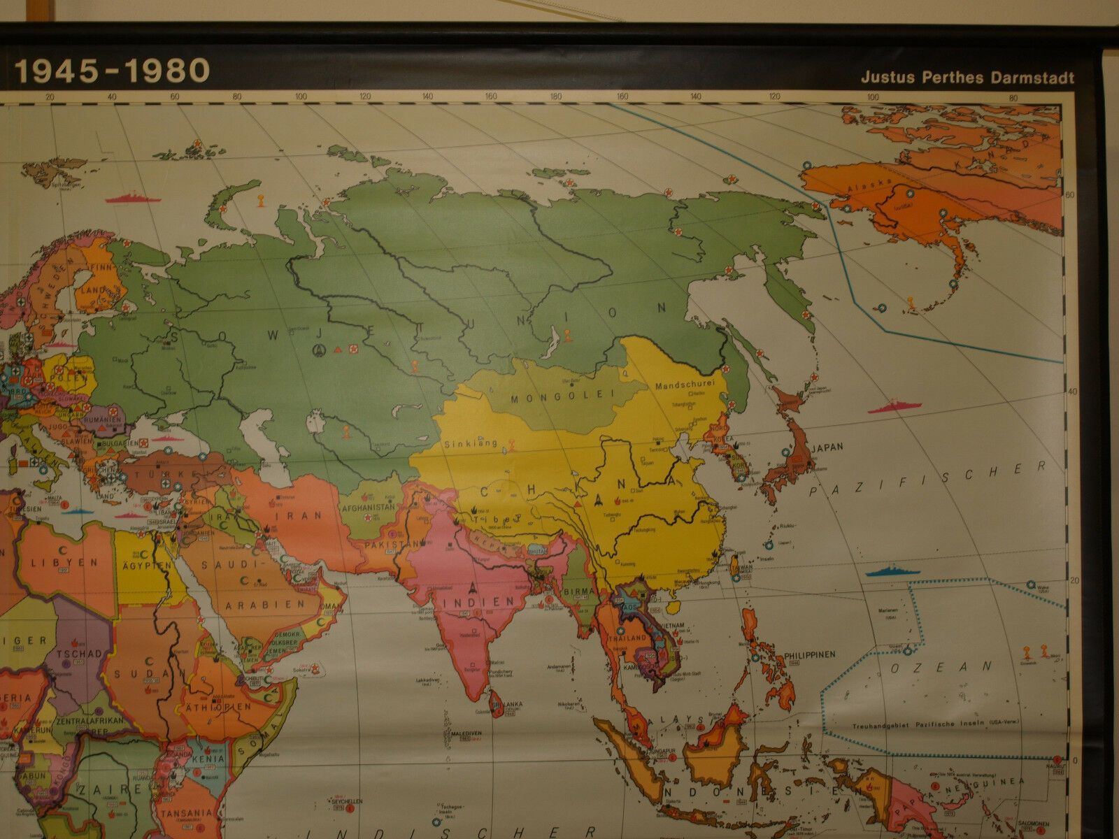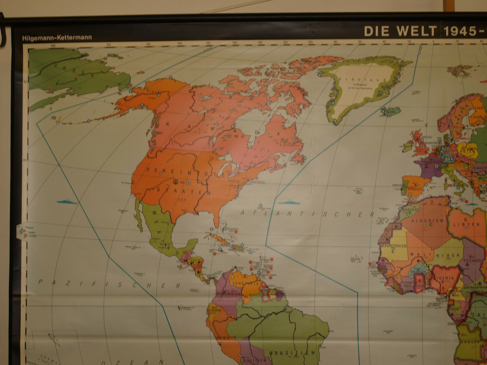 Schulwandkarte Weltkarte 1945-1980 267x169 vintage wall map 1982 nuclear weapons