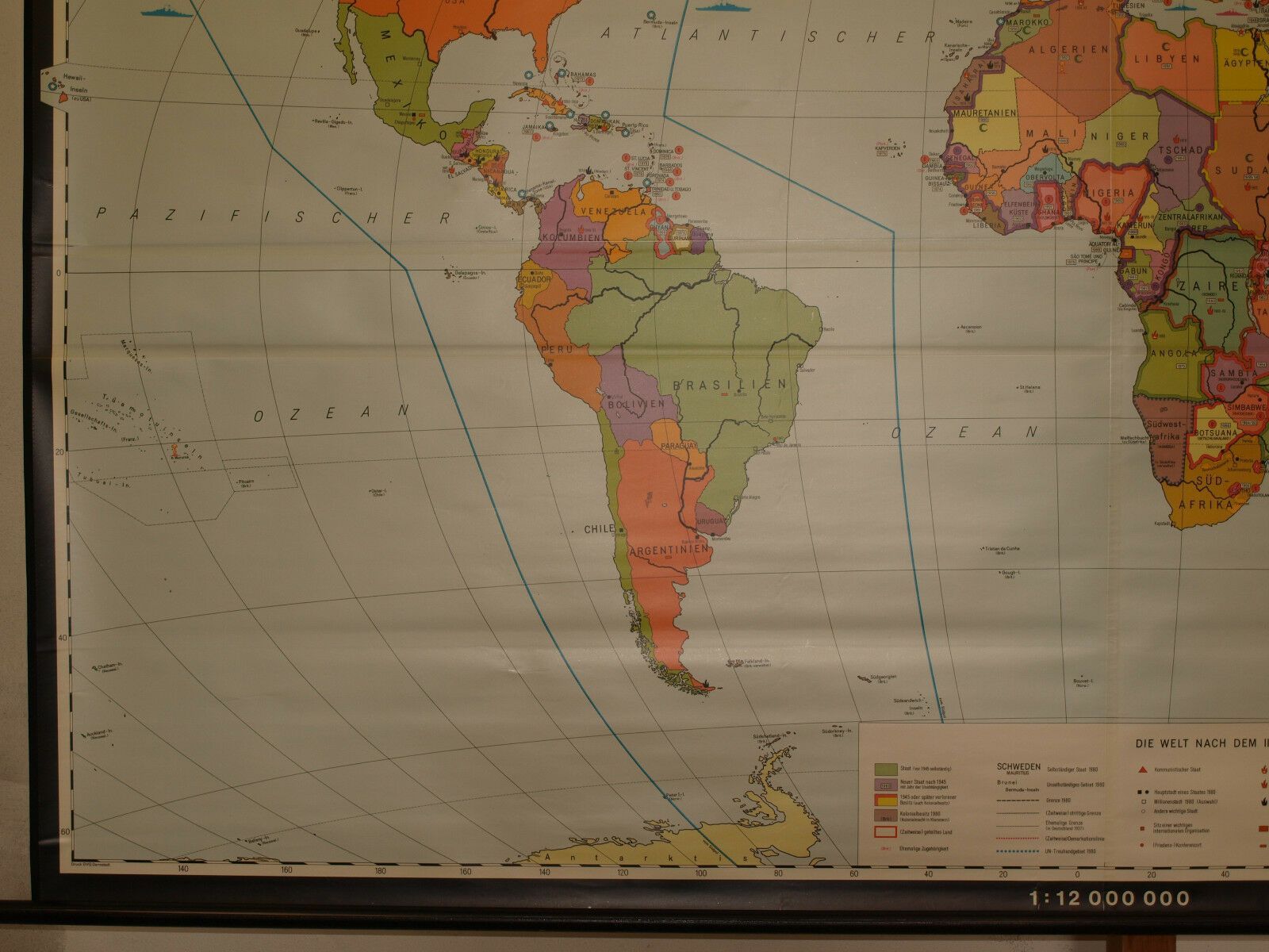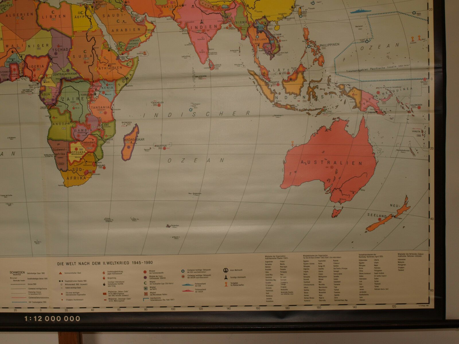 Schulwandkarte Weltkarte 1945-1980 267x169 vintage wall map 1982 nuclear weapons Siehe in der Liste unter Nr. 366 Die Welt 1945-1980 nach dem II.Weltkrieg (KS655) 1.-6. Bild ! 7.-12. Bild von typgleicher Karte hier beigefügt Kartensammler (allumfassend...speziell deutsche bezahlbare Karten ab 1900)