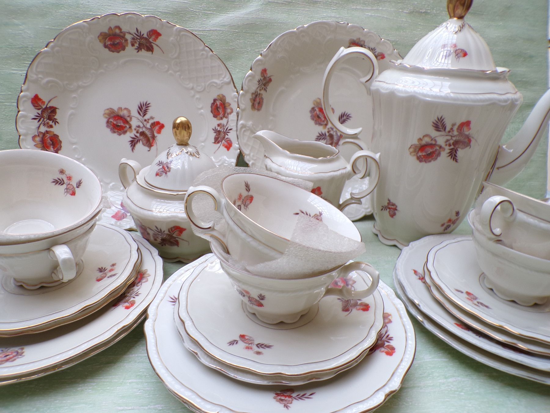 Schumann Weißwasser Kaffeeservice 25tlg rostbraune warme Blüten Edel 30/40er Jahre