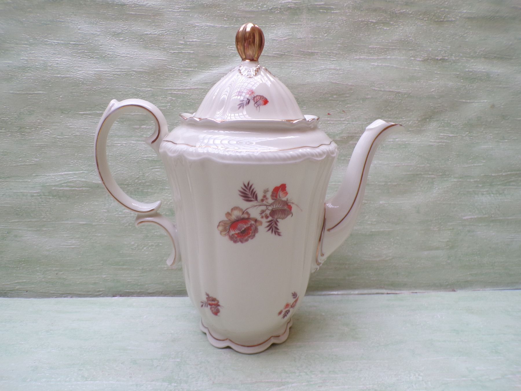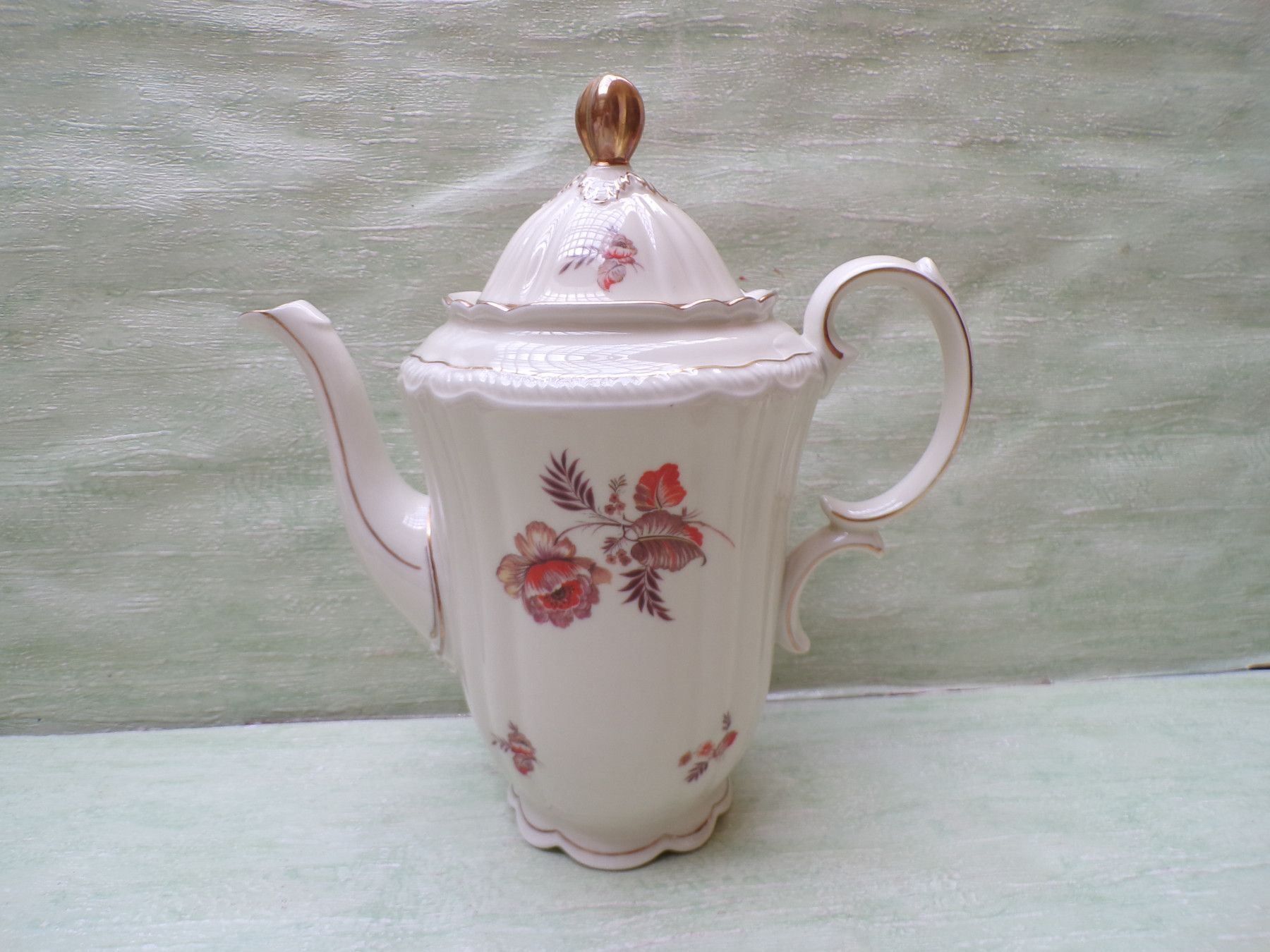 ... Erinnerungen ..... . 25 teiliges Kaffeeservice Motiv rostbraune Blüten RAR gibt dem gedeckten Tisch ein wunderschönes Ambiente . Schumann Weißwasser . 2 Beilagenteller von Schweig Weißwasser 25,5 x 4cm Dm Höhe Kaffeekanne mit Deckel Milchkännchen Zuckerdose mit Deckel 6 Kuchenteller 6 Untertelle