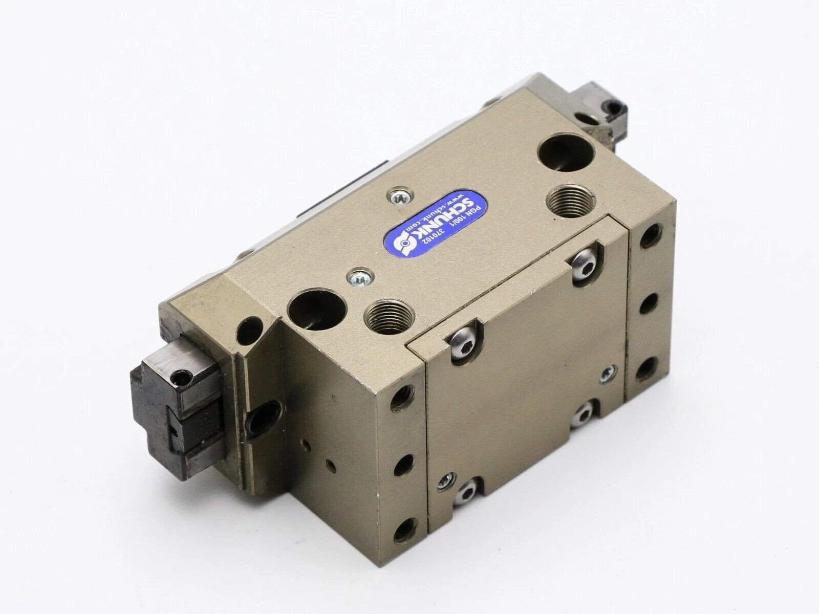 Schunk Universalgreifer PGN 100 1 (370102) • Hub pro Backe 10 mm • Schließkraft 550 N • Öffnungskraft 620 N • Schließkraft (bei Fingerlänge 0 mm) 613 N • Öffnungskraft (bei Fingerlänge 0 mm) 690 N • Eigenmasse 0.75 kg • Empfohlenes Werkstückgewicht 2.75 kg • Zylindervolumen pro Doppelhub 40 cm³ • Mi... Mehr