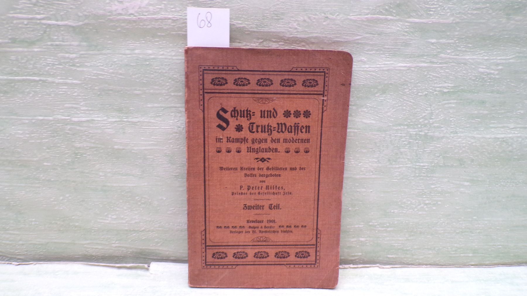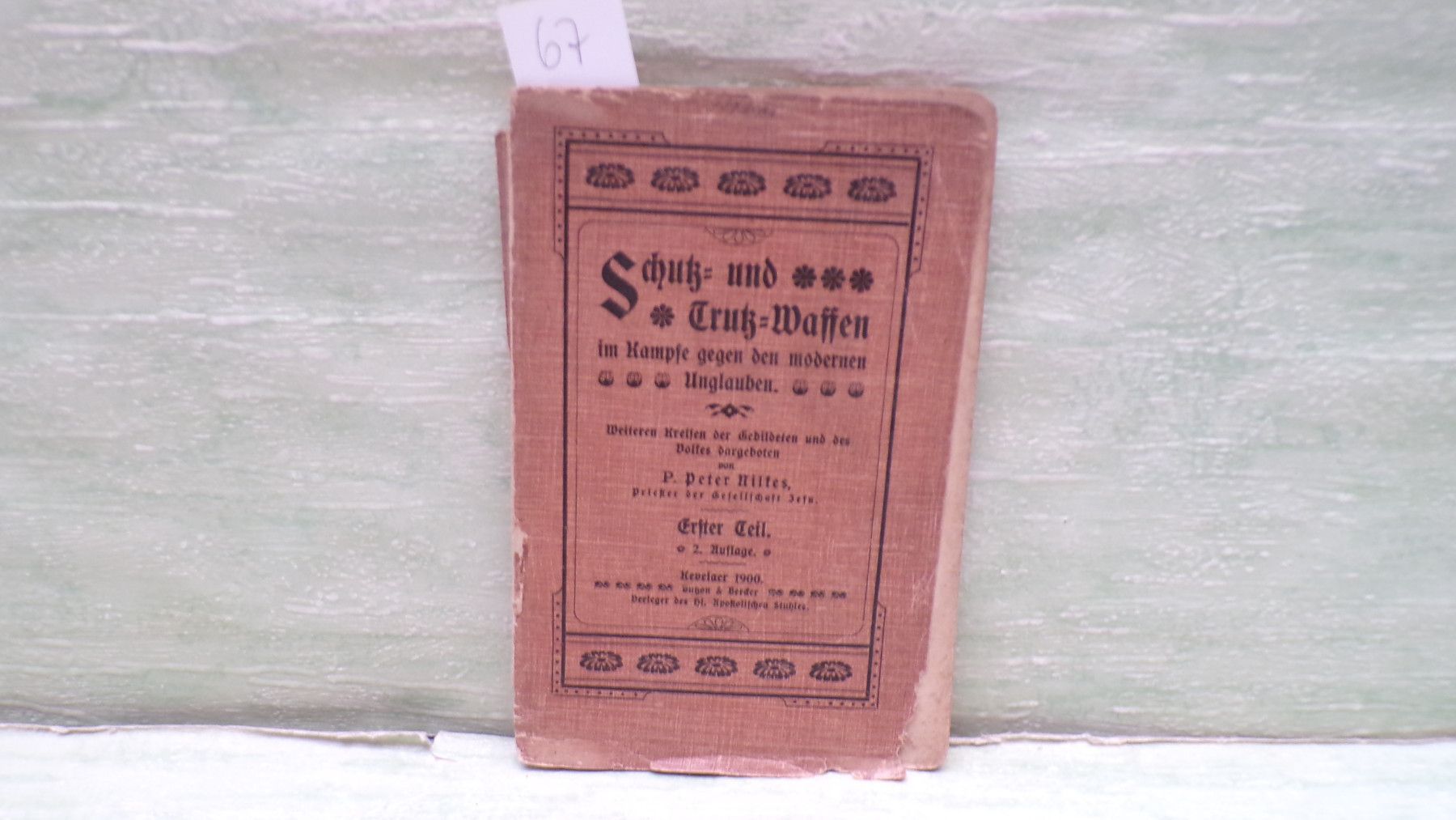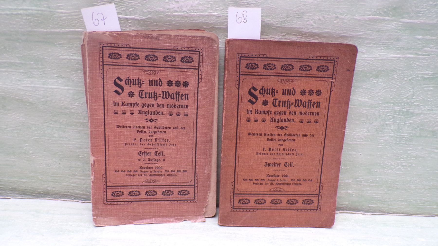 Jugend- & Kinderbücher ua ... Erinnerungen ..... . Schutz und Trutz-Waffen im Kampfe gegen den modernen Unglauben Weiteren Kreisen der Gebildeten und des Volkes dargeboten von P. Peter Nilkes Priester der gesellschaft Jesu Kevelaer Butzon & Bercker Verleger des hl Apostolischen Stuhles . Sof