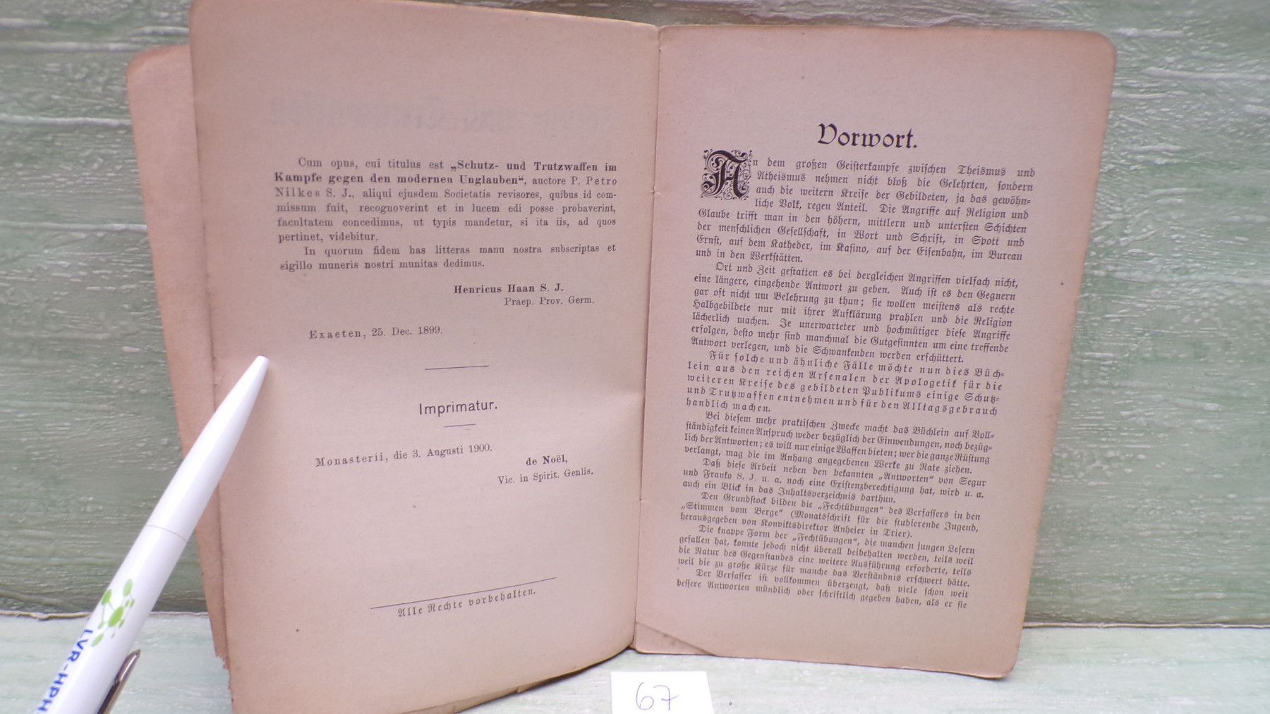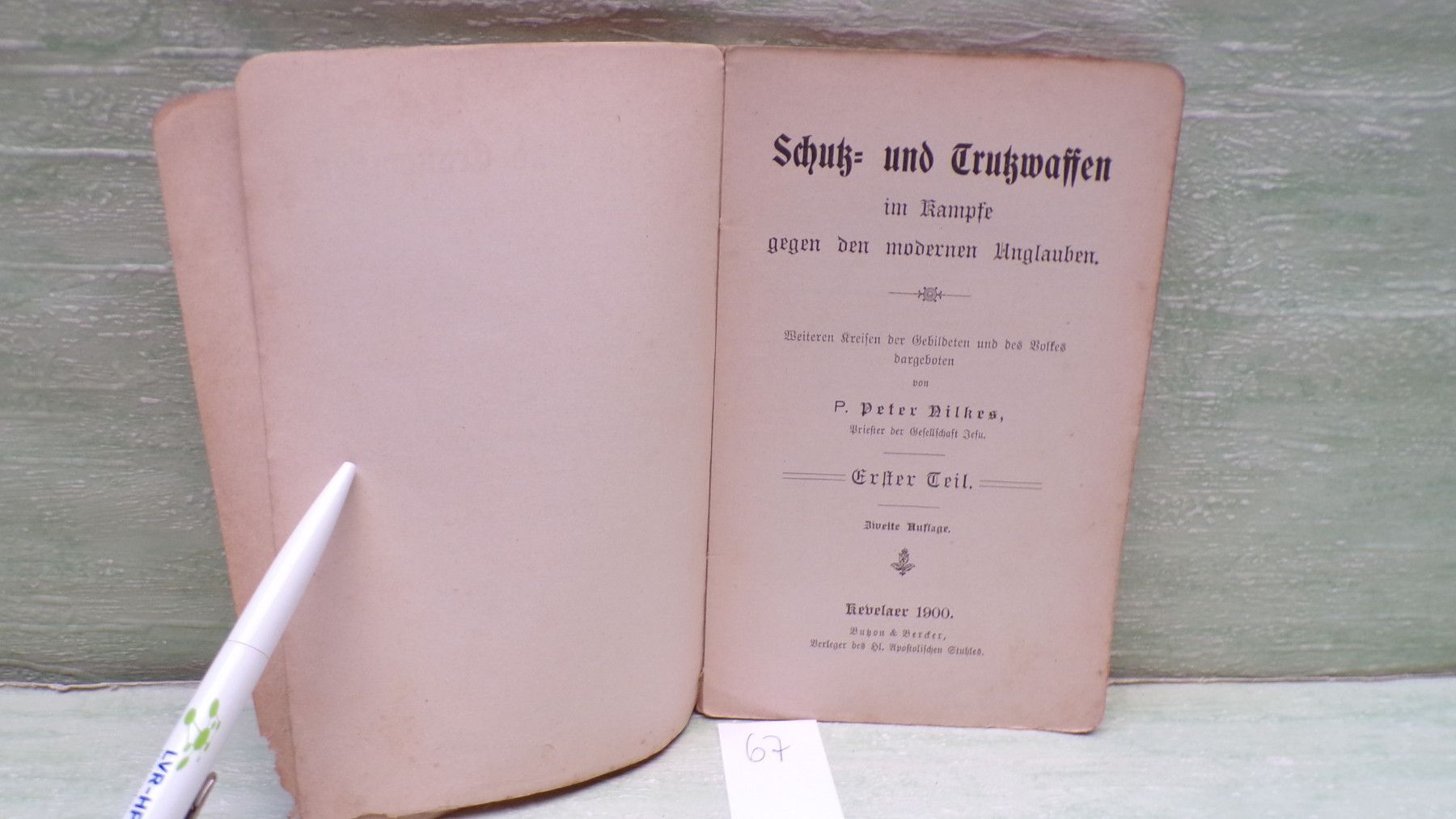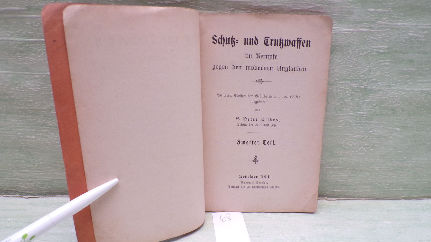Jugend- & Kinderbücher ua ... Erinnerungen ..... . Schutz und Trutz-Waffen im Kampfe gegen den modernen Unglauben Weiteren Kreisen der Gebildeten und des Volkes dargeboten von P. Peter Nilkes Priester der gesellschaft Jesu Kevelaer Butzon & Bercker Verleger des hl Apostolischen Stuhles . Sof