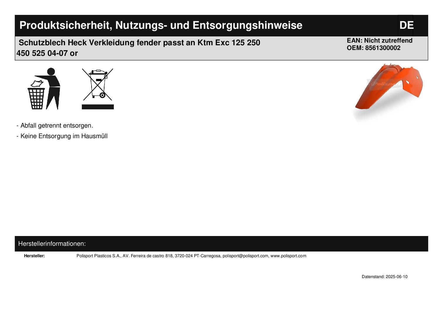 Schutzblech Heck Verkleidung fender passt an Ktm Exc 125 250 450 525 04-07 or In dieser Auktion gibt es folgenden Artikel zu kaufen: Schutzblech hinten (ähnlich Foto) Fahrzeug: passend für Ktm Exc 125, 200, 250, 300, 400, 450, 525 Bj.: 2004 - 2007 (2+4-Takt) Sx, Sx-f 125, 200, 250 450 Bj.: 2003 - 20