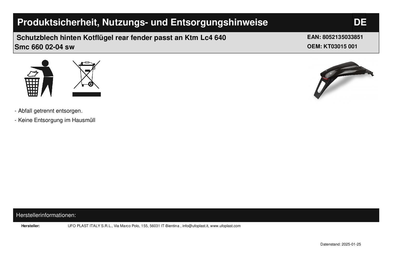 Schutzblech hinten Kotfl?gel rear fender passt an Ktm Lc4 640 Smc 660 02-04 sw
