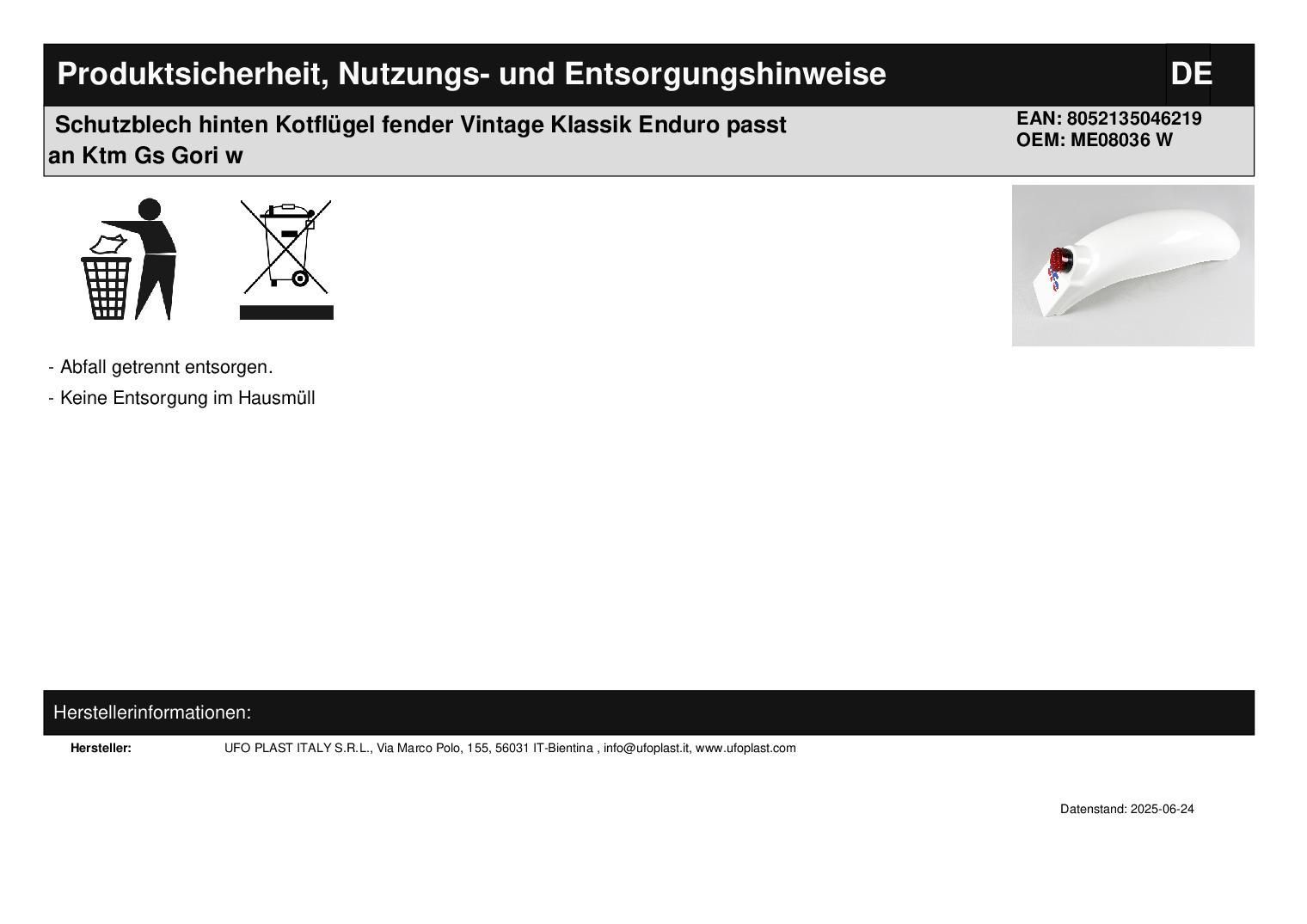 Schutzblech hinten Kotflügel fender Vintage Klassik Enduro passt an Ktm Gs Gori