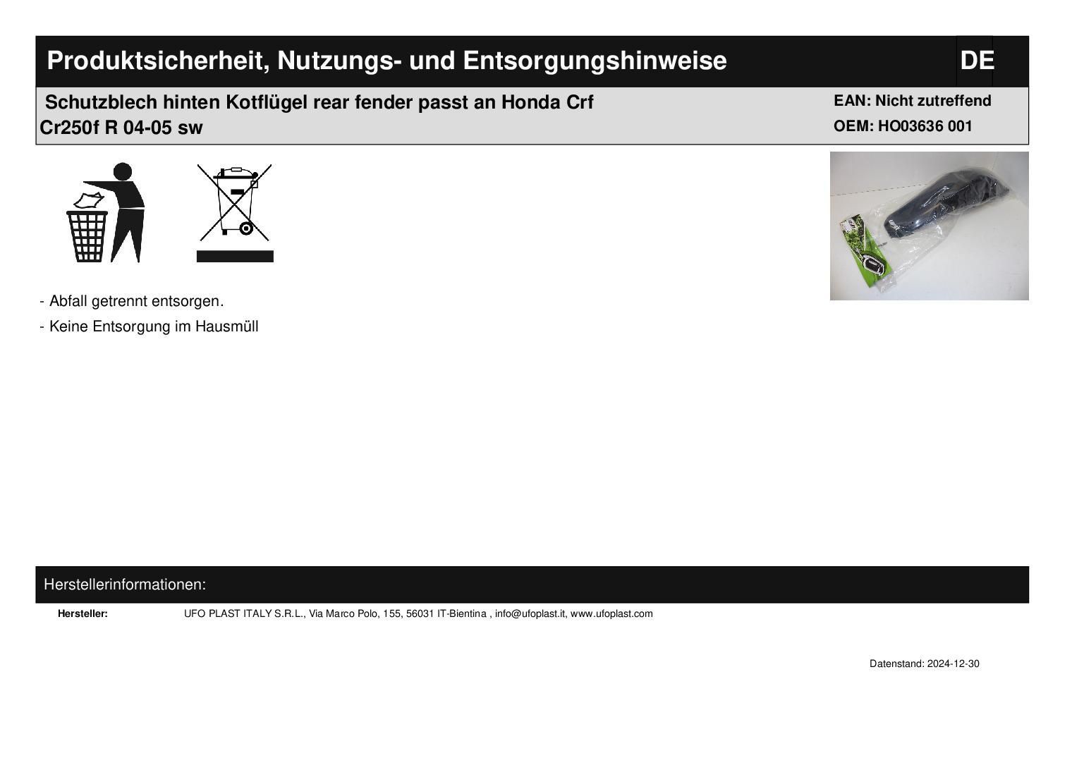 Schutzblech hinten Kotflügel rear fender passt an Honda Crf Cr250f R 04-05 sw