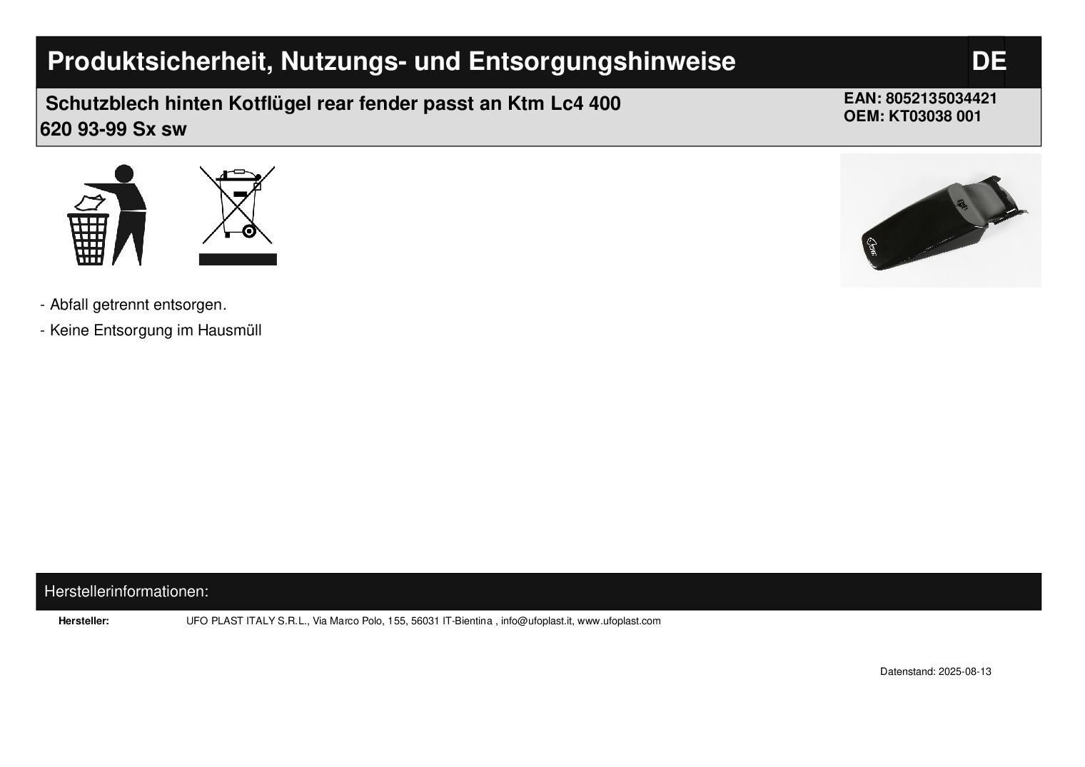 Schutzblech hinten Kotflügel rear fender passt an Ktm Lc4 400 620 93-99 Sx sw