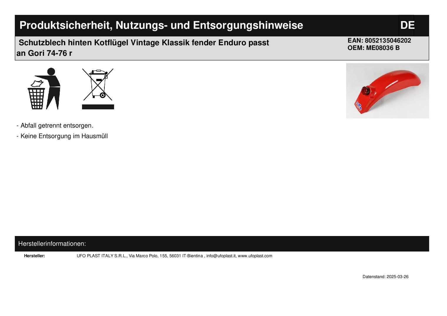 Schutzblech hinten Kotflügel Vintage Klassik fender Enduro passt an Gori 74-76 r