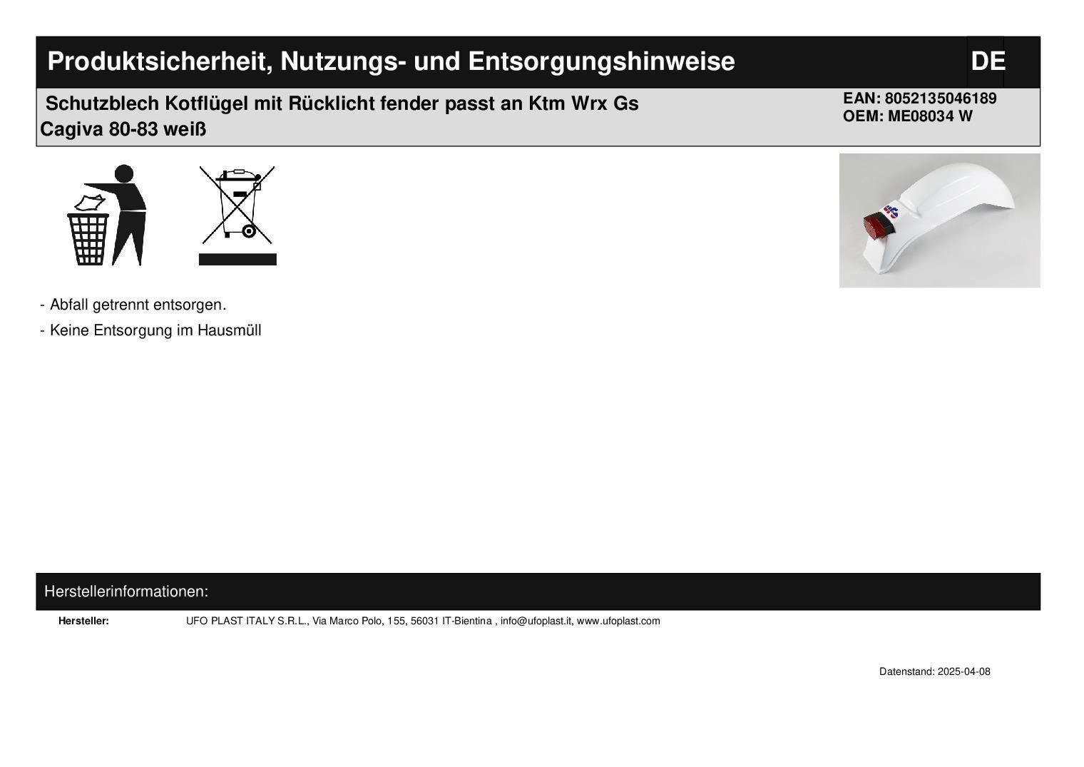 Schutzblech Kotfl?gel mit R?cklicht fender Enduro Vintage Classic 50-125 75-79 w