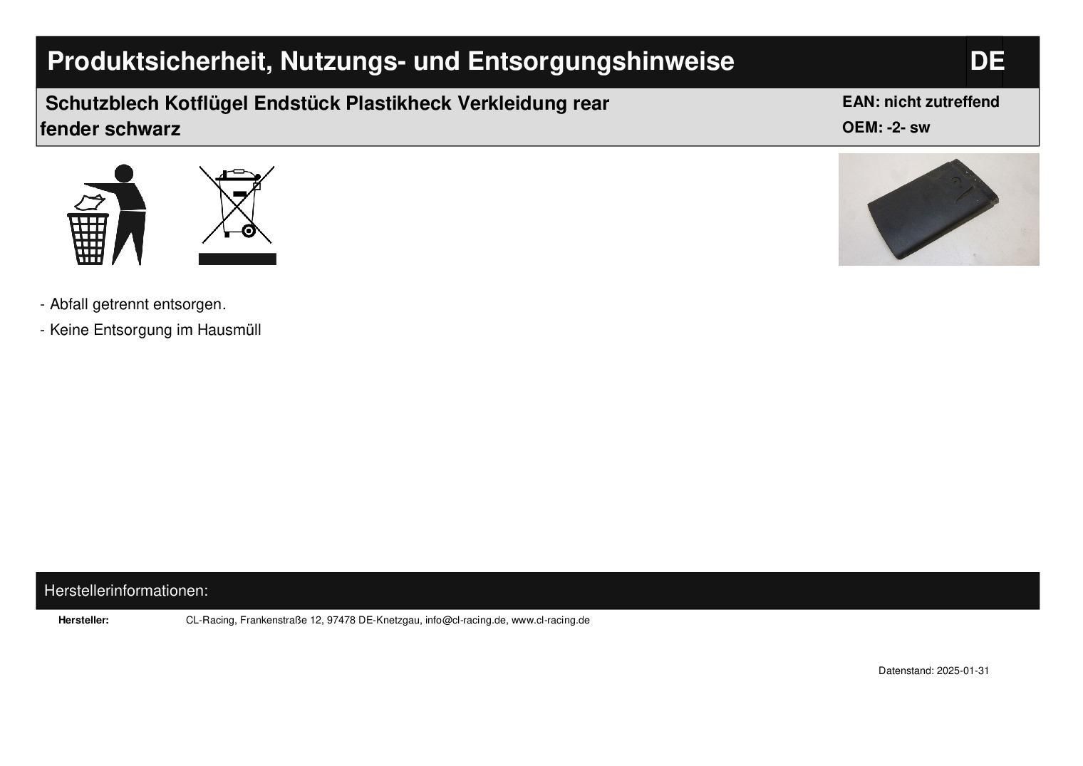 Schutzblech Kotflügel Endstück Plastikheck Verkleidung rear fender schwarz In dieser Auktion gibt es folgenden Artikel zu kaufen: Endstück (siehe Foto) Fahrzeug: unbekannt Bj.: unbekannt Lieferumfang: siehe Foto Artikelzustand: neu aus Geschäftsauflösung, mit leichten Lagerspuren, Zustand siehe Foto
