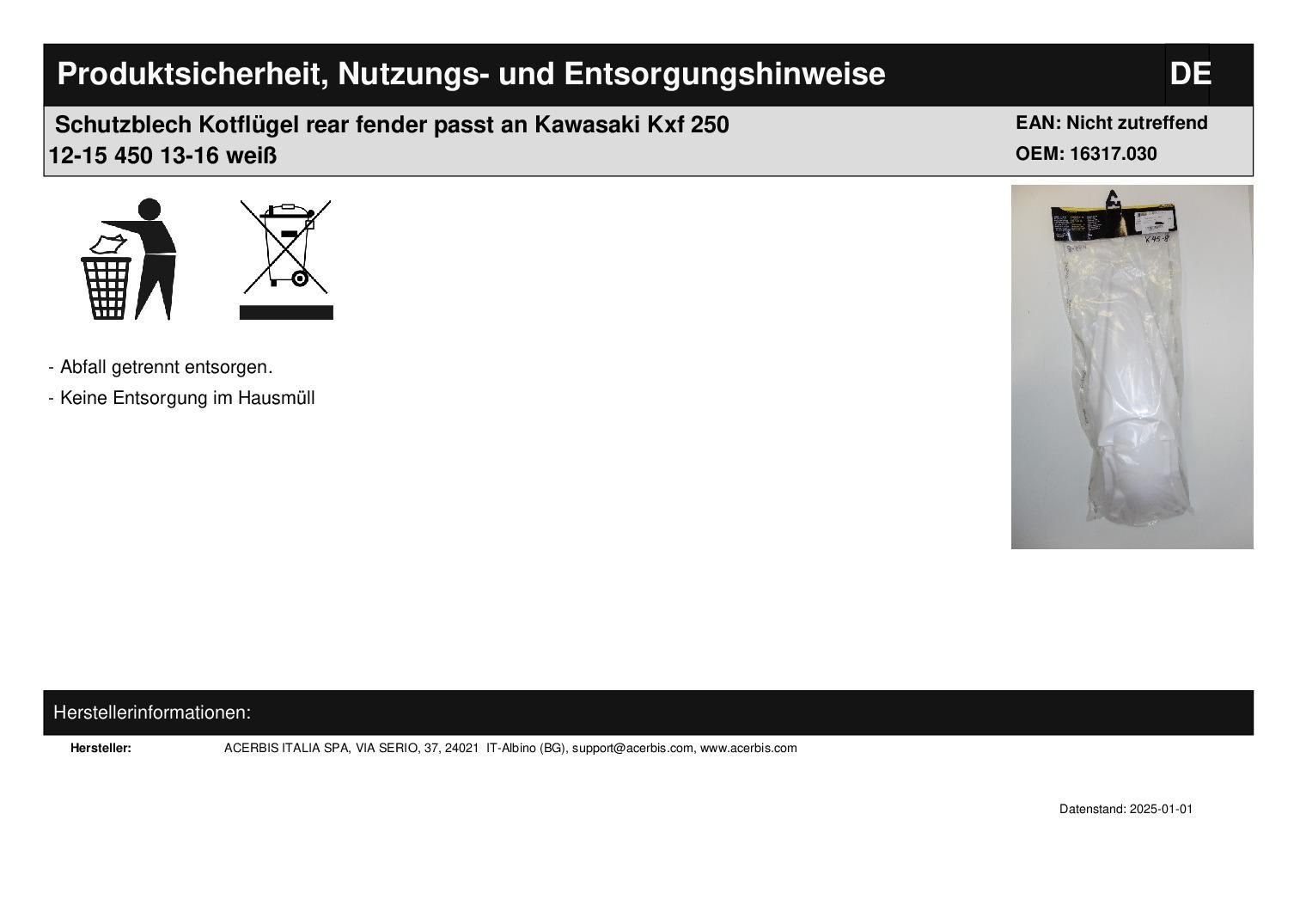 Schutzblech Kotflügel rear fender passt an Kawasaki Kxf 250 12-15 450 13-16 weiß In dieser Auktion gibt es folgenden Artikel zu kaufen: Schutzblech hinten (siehe Foto) Modell: passend für Kawasaki KXF 250 Bj.: 12 - 15 KXF 450 Bj.: 13 - 16 Lieferumfang: siehe Foto Artikelzustand: neu aus Geschäftsauf