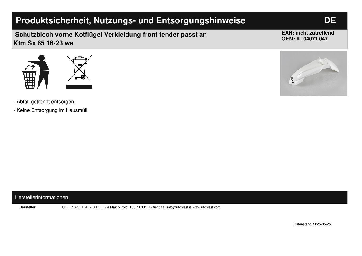 Schutzblech vorne Kotfl?gel Verkleidung front fender passt an Ktm Sx 65 16-23 we
