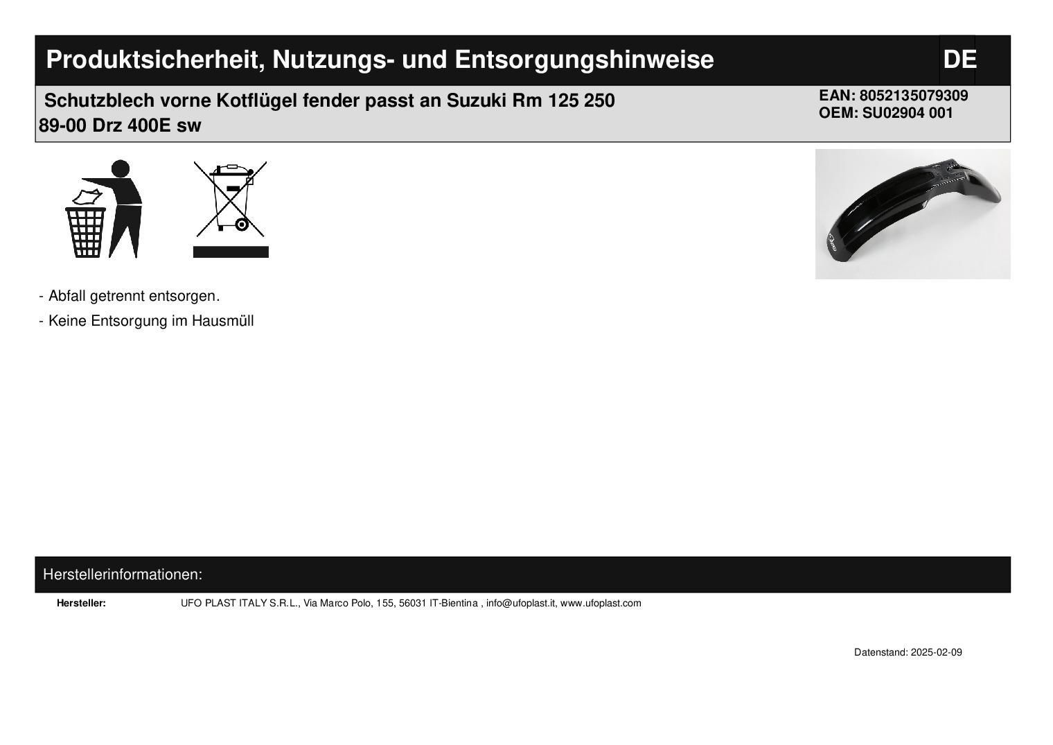 Schutzblech vorne Kotflügel fender passt an Suzuki Rm 125 250 89-00 Drz 400E sw